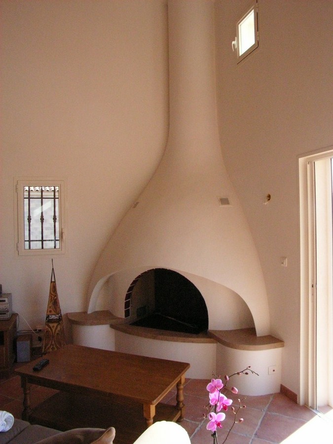 Этот вид каминов, как правило, проектируется и строится вместе с домом, так как топка, дымосборник и дымоход такой модели встроены в стену.