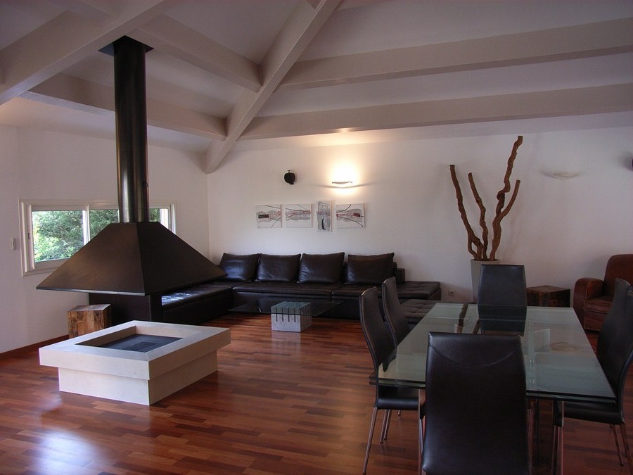 - Так как островной камин занимает много места, его лучше устанавливать в просторных помещениях: в интерьере современной гостиной или холла, а также применять при зонировании.