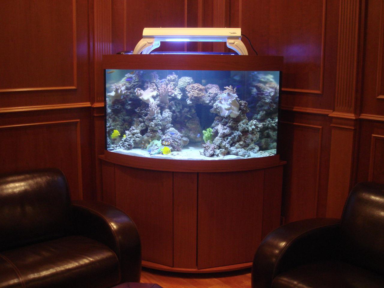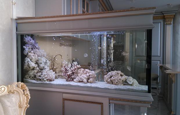 По составу воды и происхождению обитателей аквариумы делятся на пресноводные и морские. Последние требуют более сложного оборудования, поэтому дороже. Прежде чем заказывать аквариум, нужно определиться, что привлекает вас больше всего и решить, каких рыб вы хотели бы там видеть, если вообще рыбы для вас принципиальны.