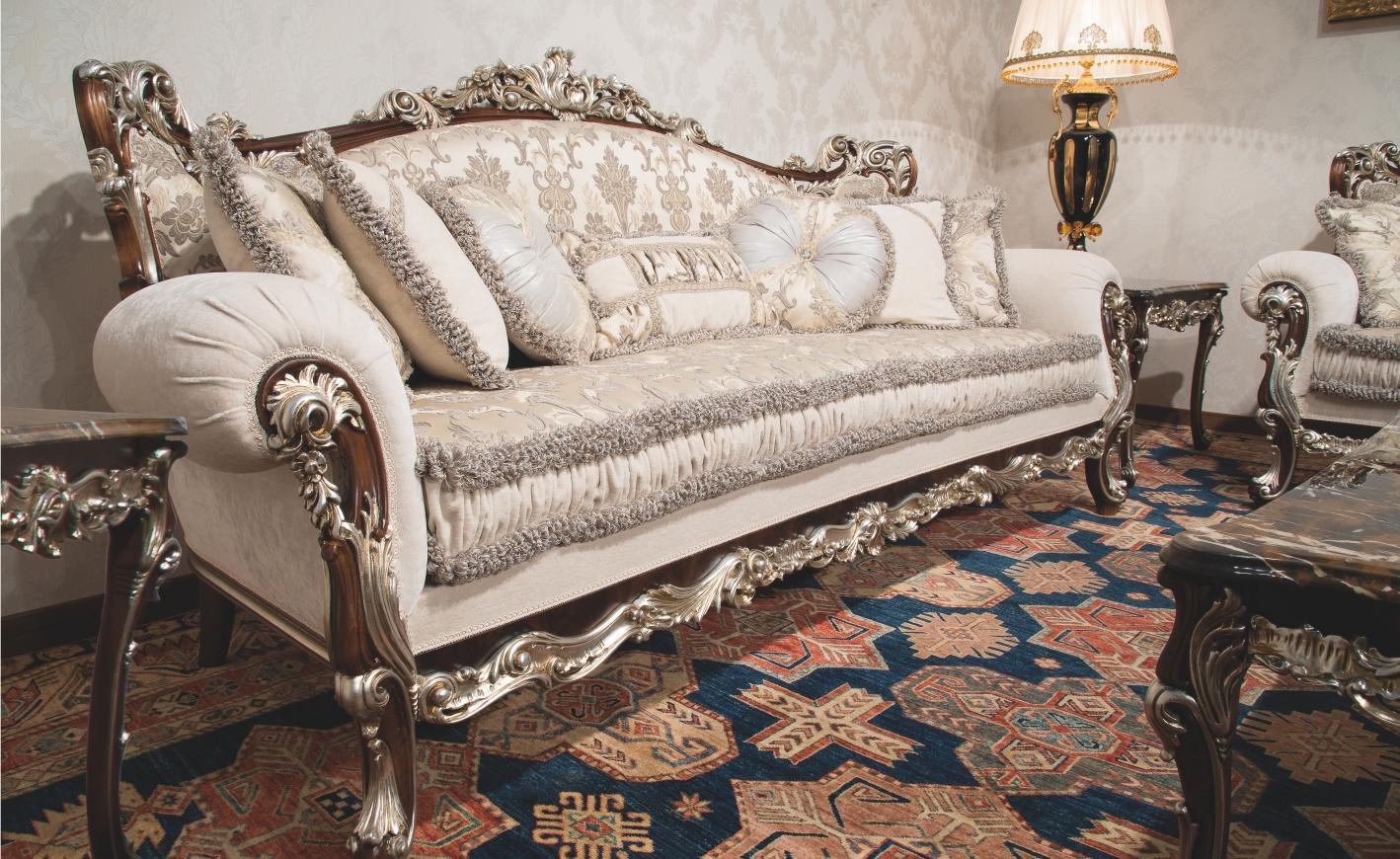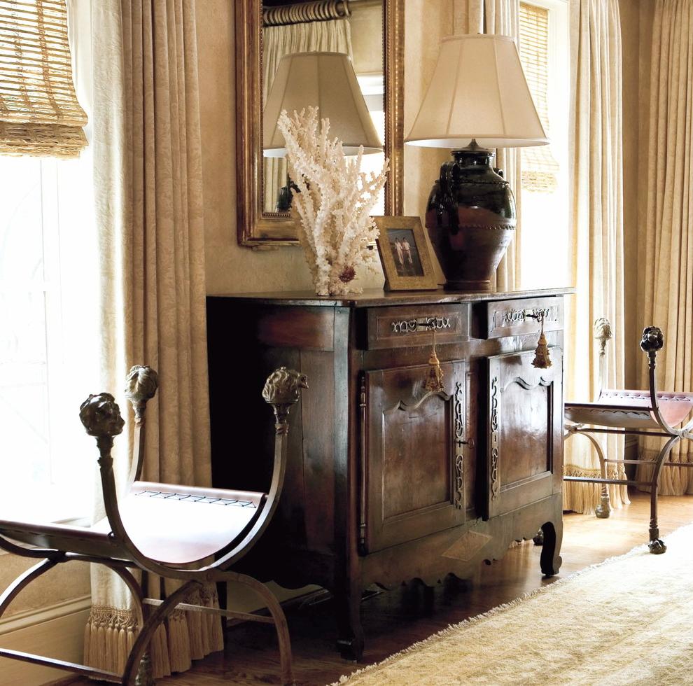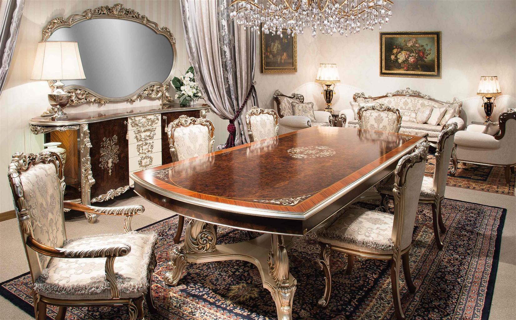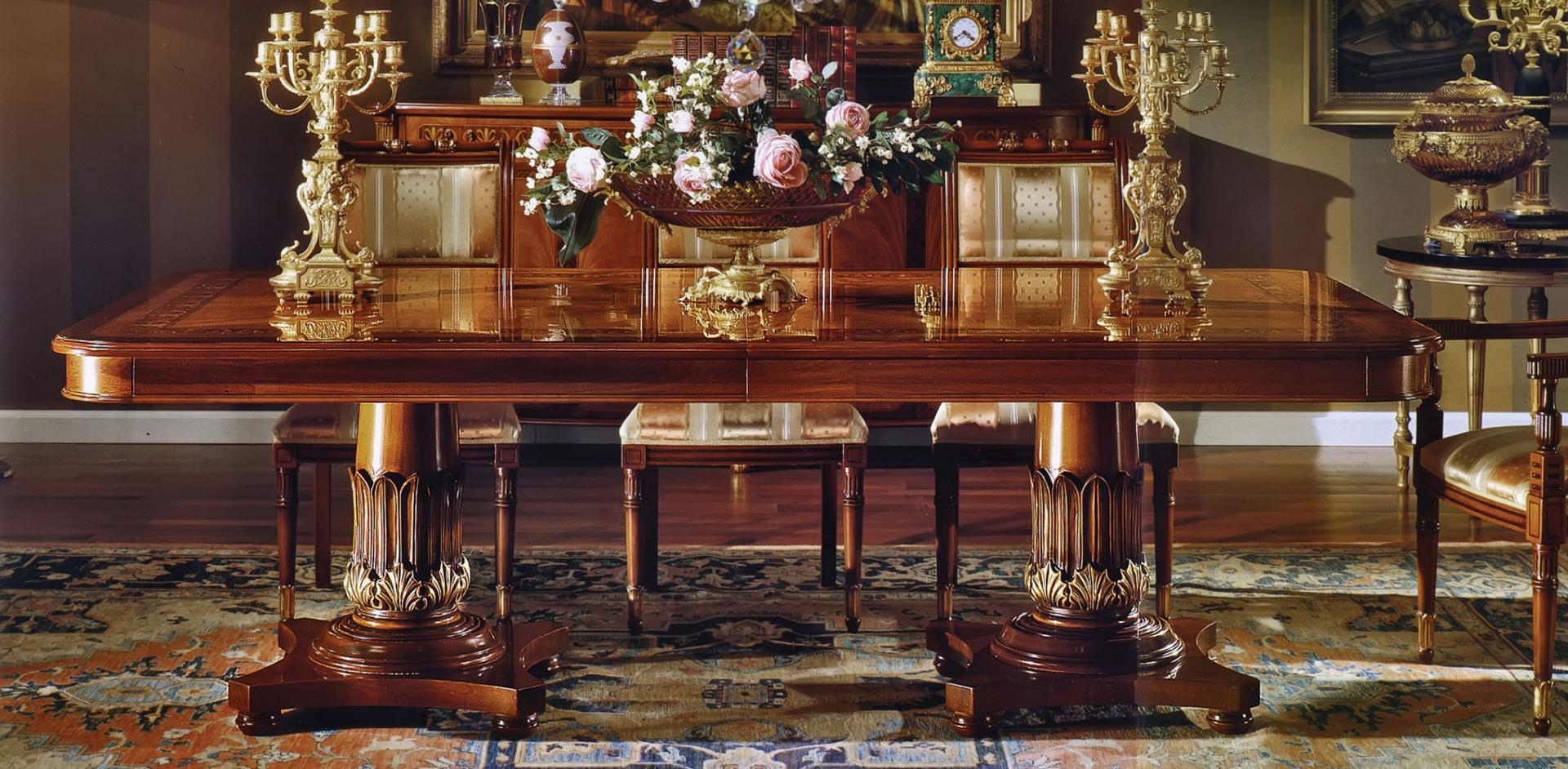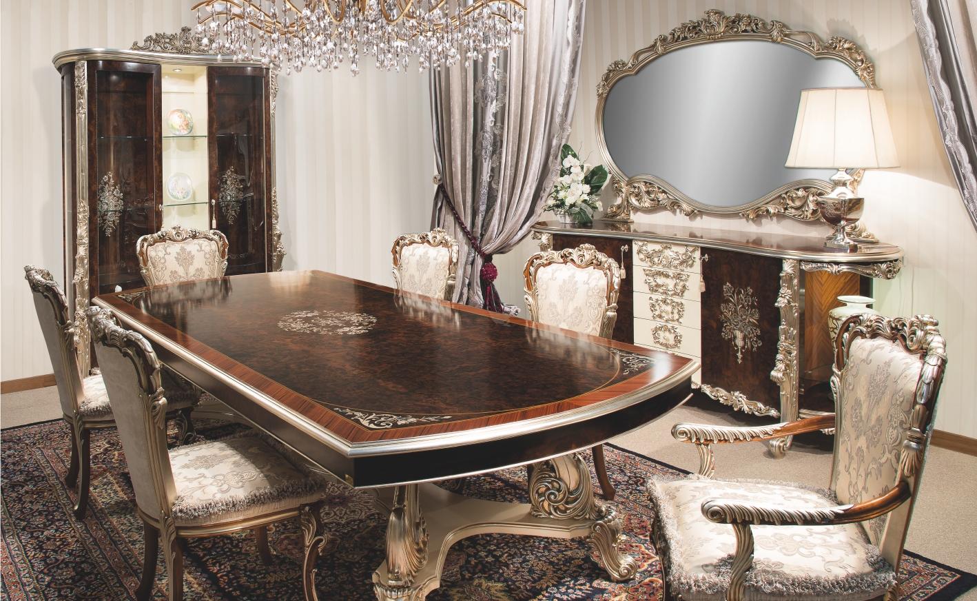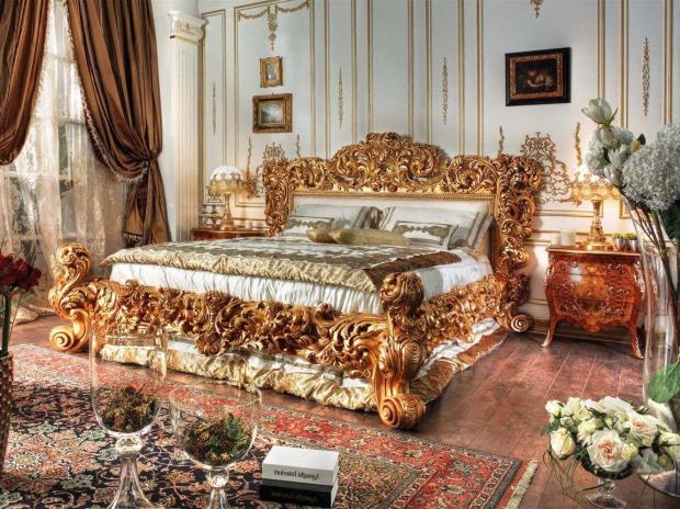 - Мебель преимущественно из дерева красного или темных тонов с богатым резным декором.