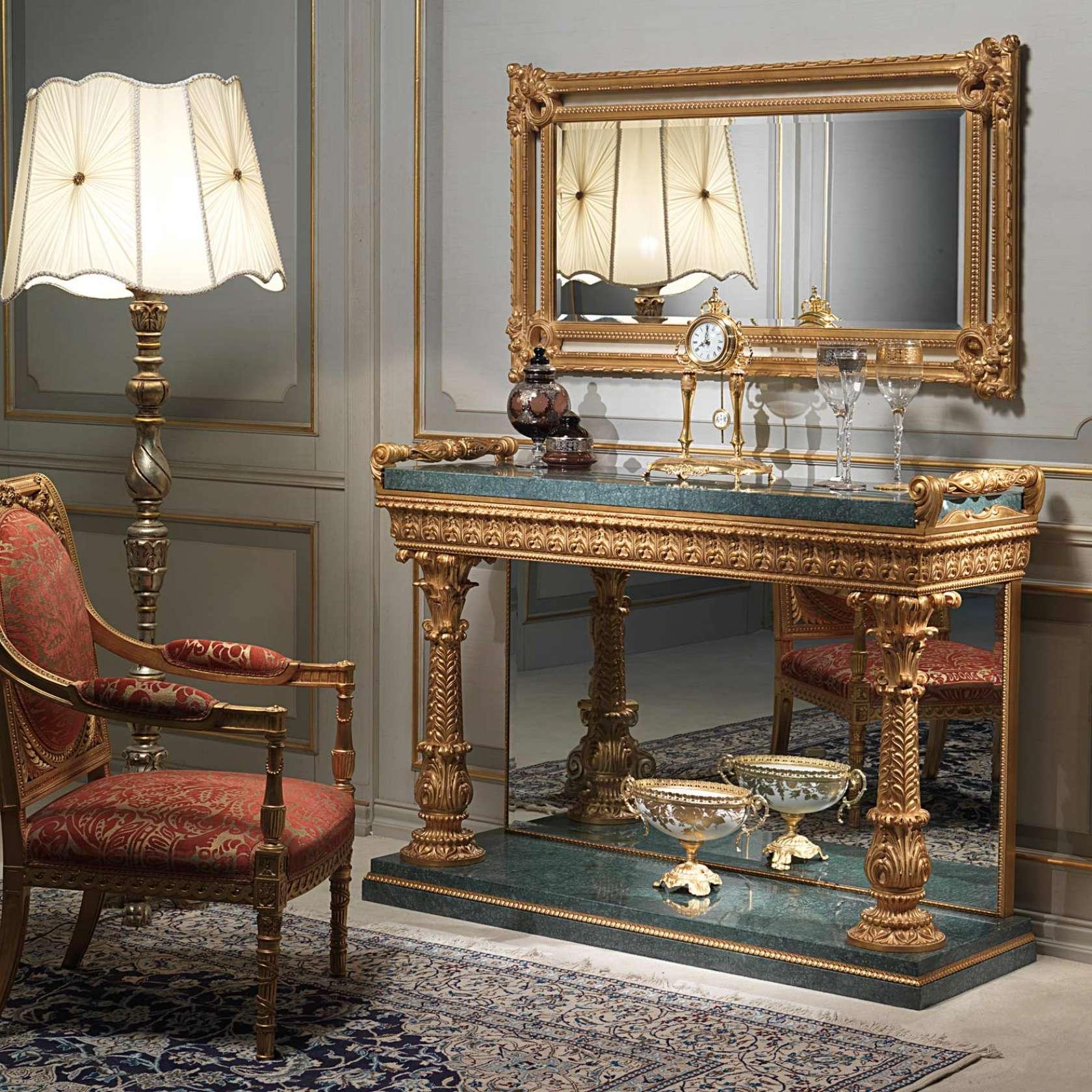 - Большие зеркала с массивными золочеными рамами.