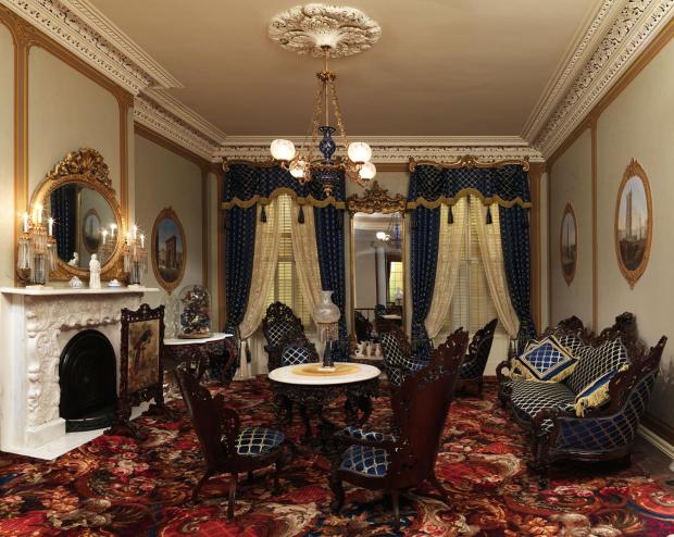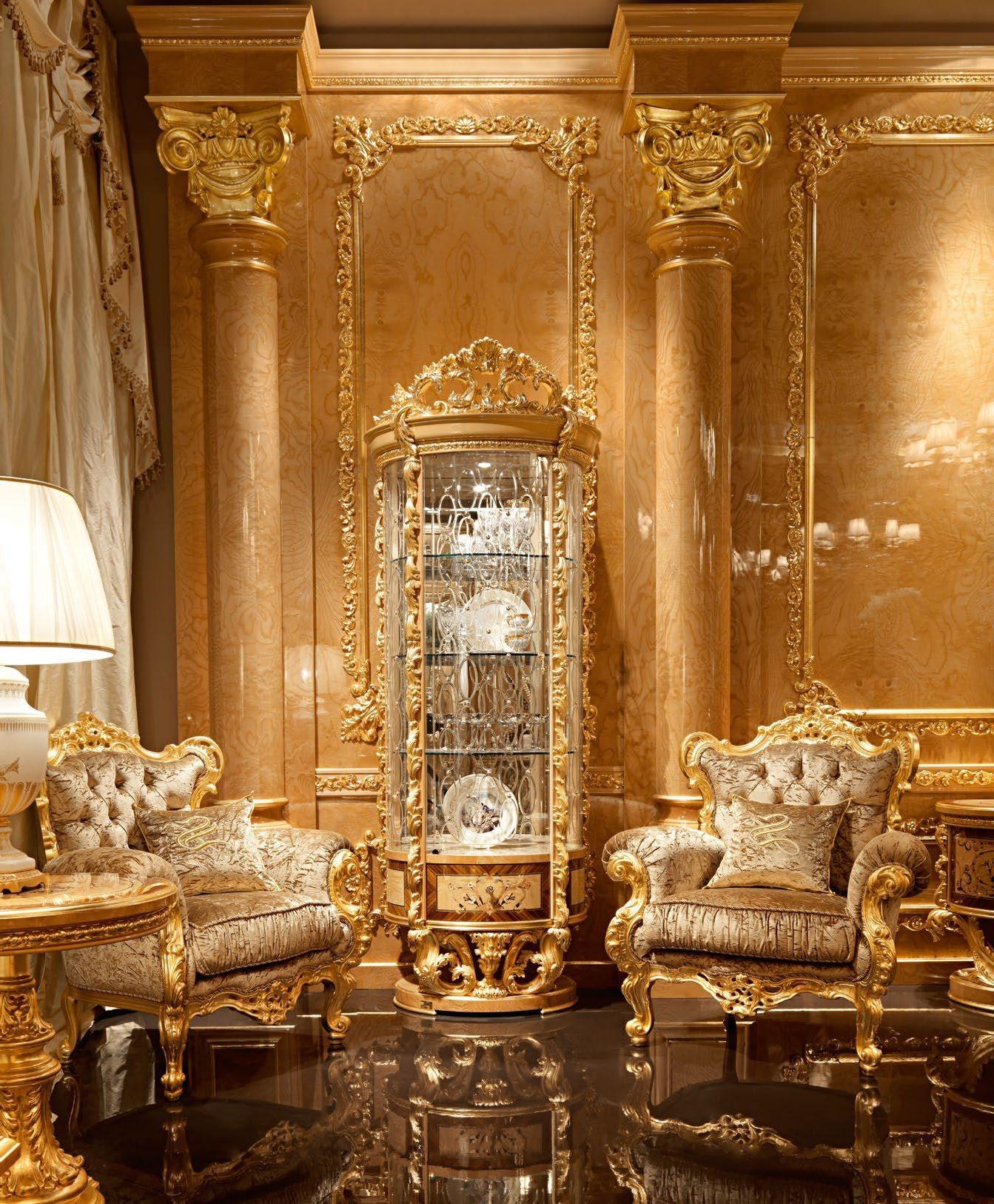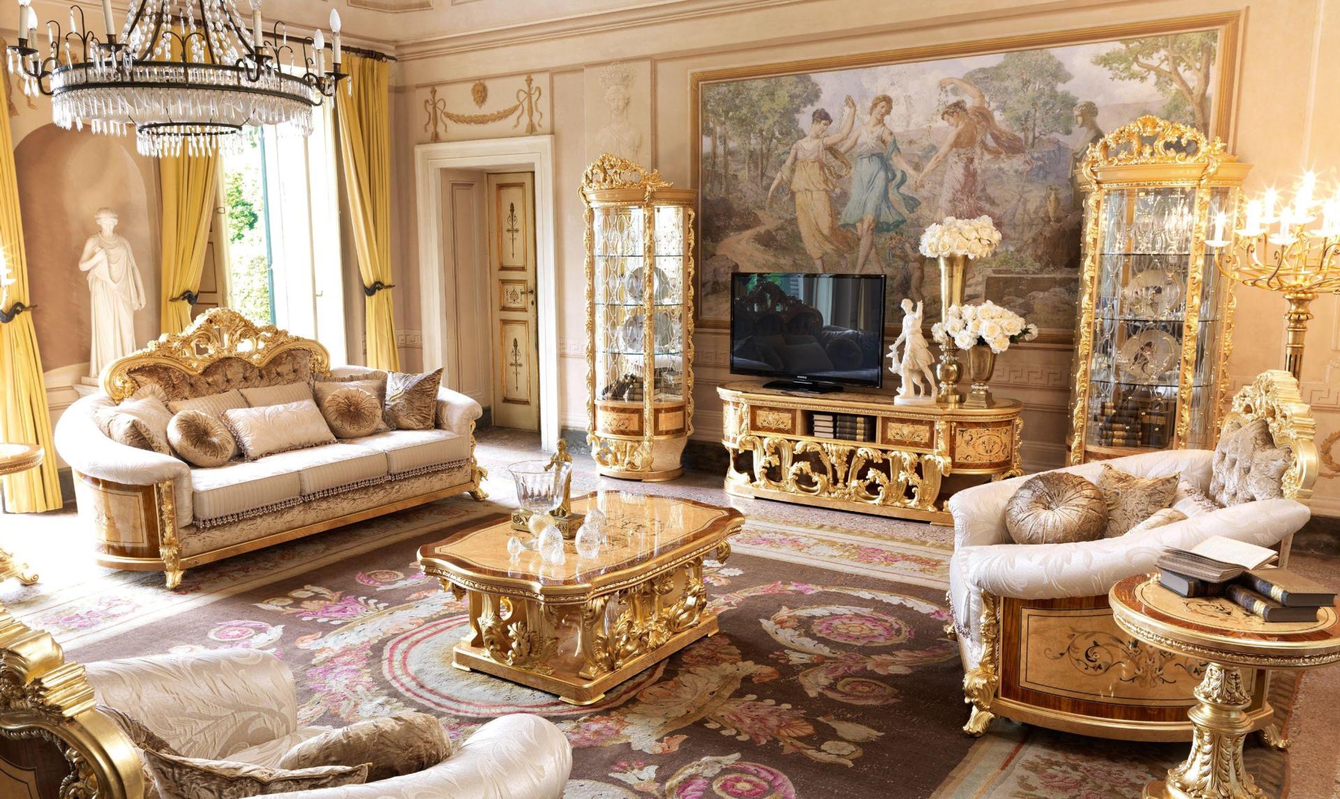 Представляет собой произведение искусства с гризайлями, изысканной лепниной, патиной или позолотой.