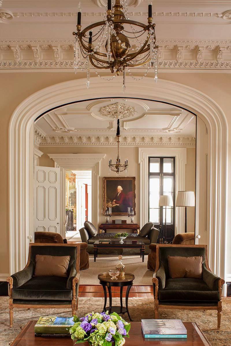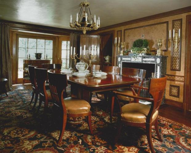 - Гостиная в стиле ампир также может включать в себя ковер в диванной или обеденной зоне.