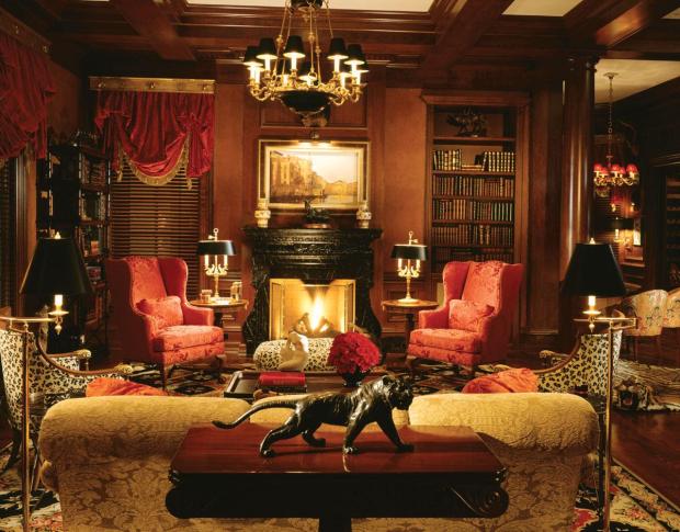 - Стены украшают бронзовые канделябры, пол – торшеры с массивными ножками.