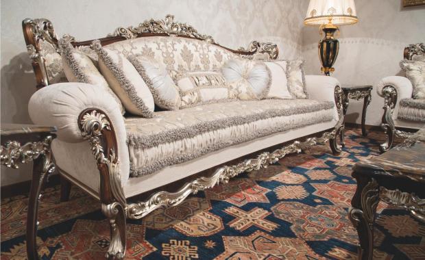 - Мягкая часть мебели чаще всего – бархат или кожа.