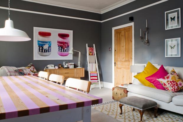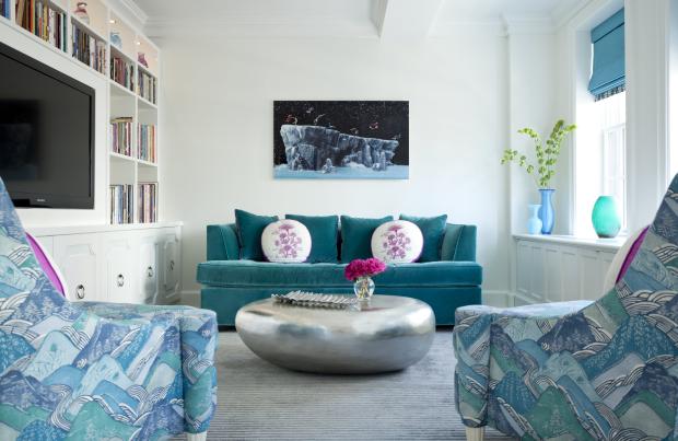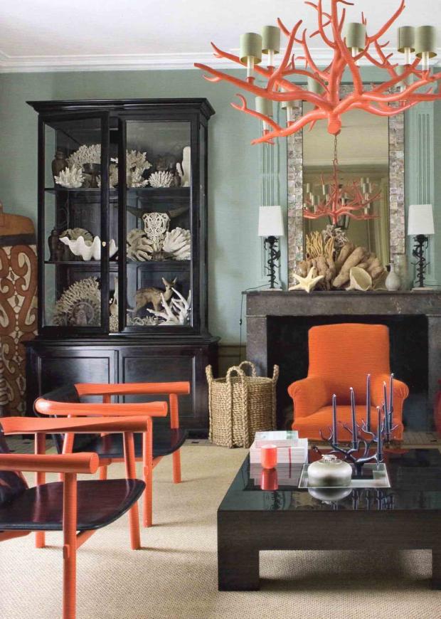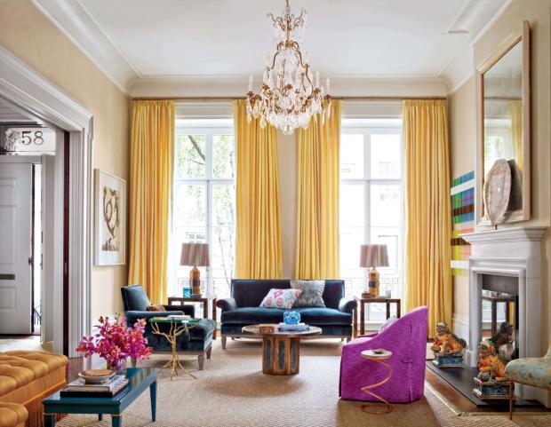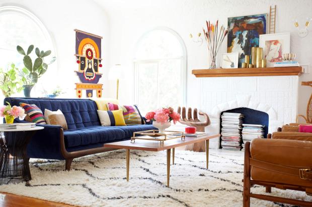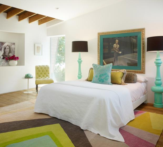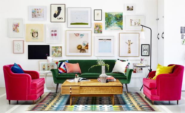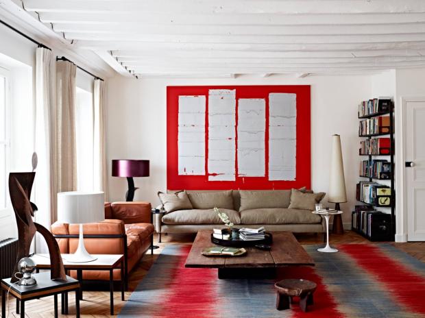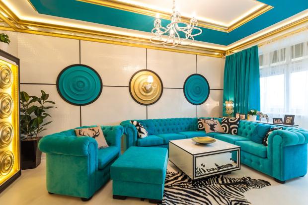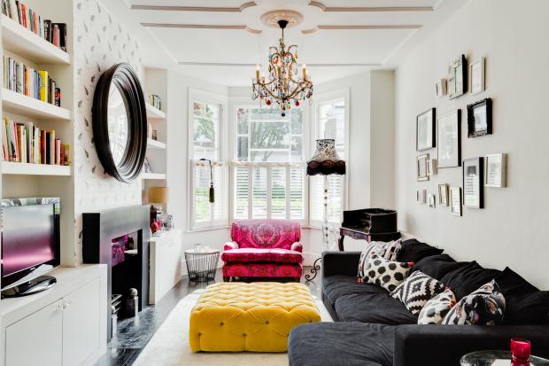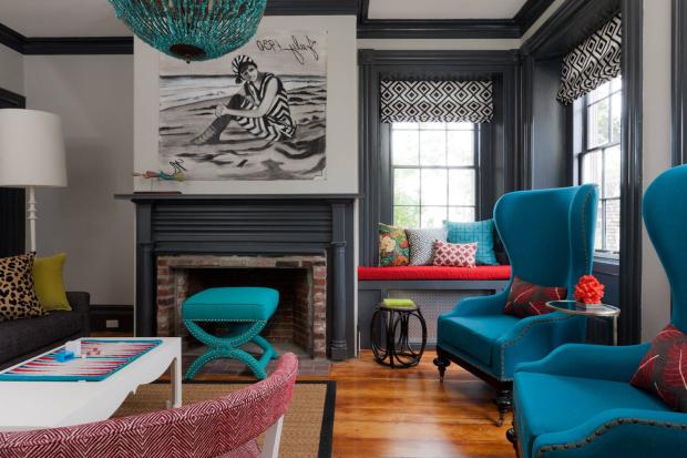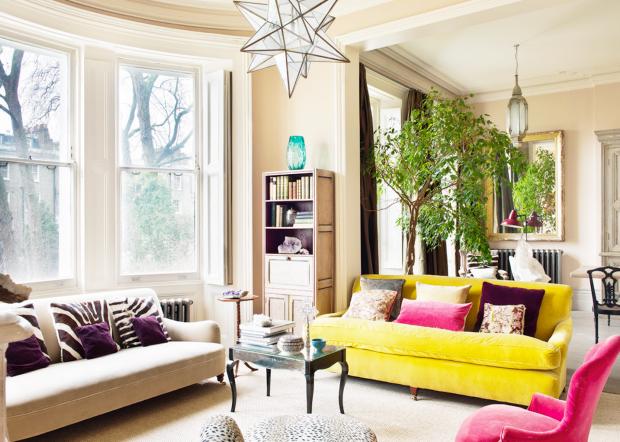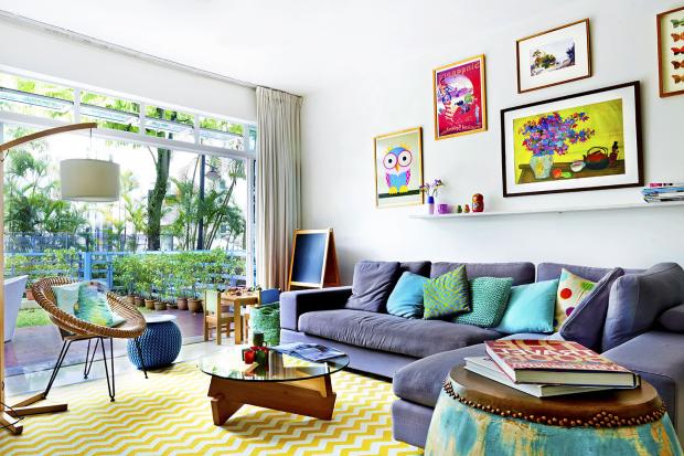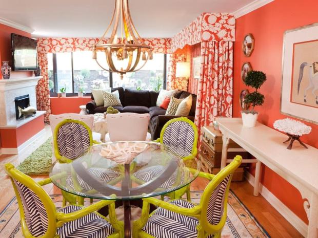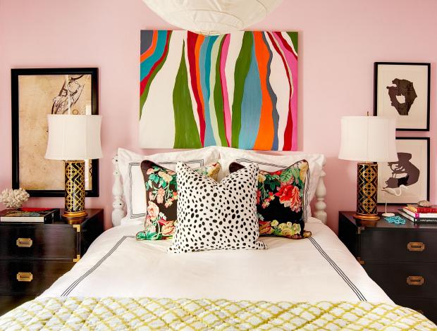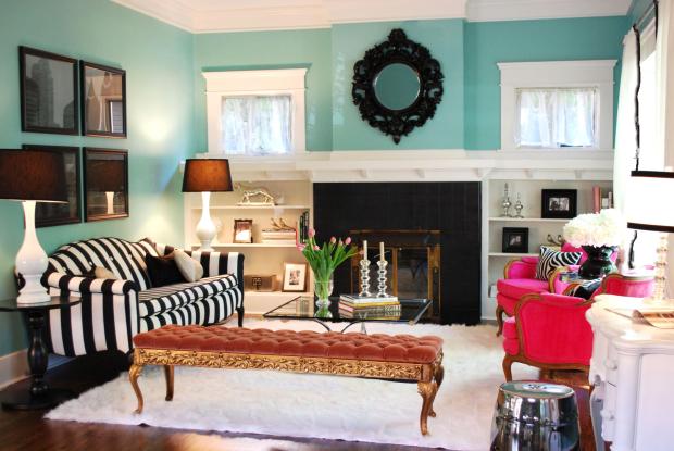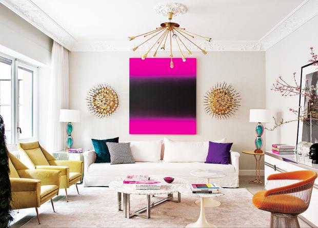 – выбрать один яркий оттенок и размножить его (пример: цвет крупного предмета – дивана или кресла – повторить в абстрактной картине, кашпо, подушке, шторах, ковре).