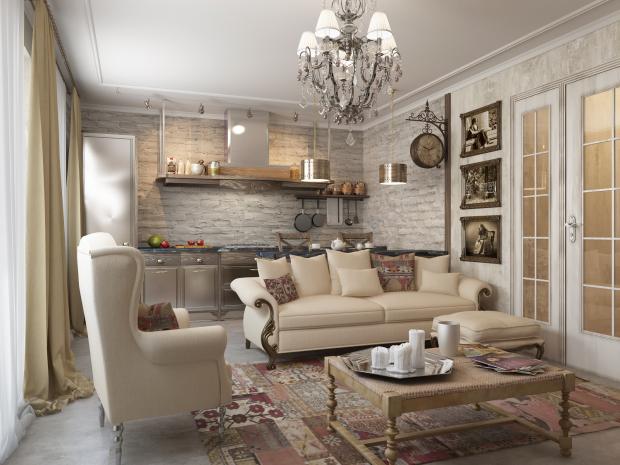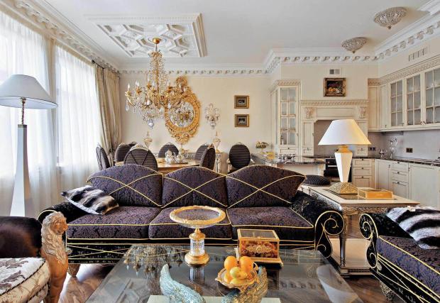 Они хороши стремлением к свободному светлому пространству. Такую основу проще насытить яркими предметами и наполнить динамикой. В традиционном варианте базой выступает именно классика, которую можно сочетать с барокко, готикой, рококо, колониальными и этническими элементами.