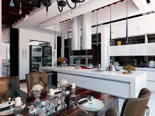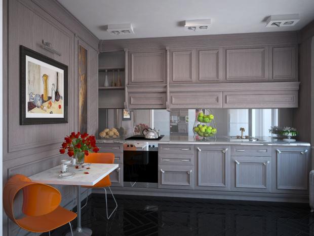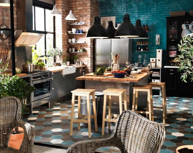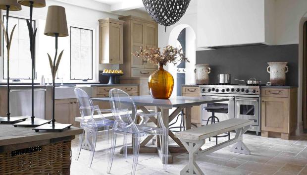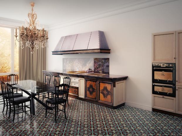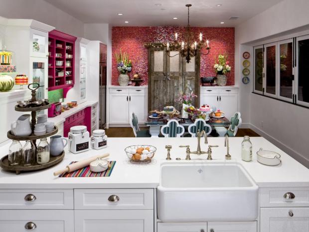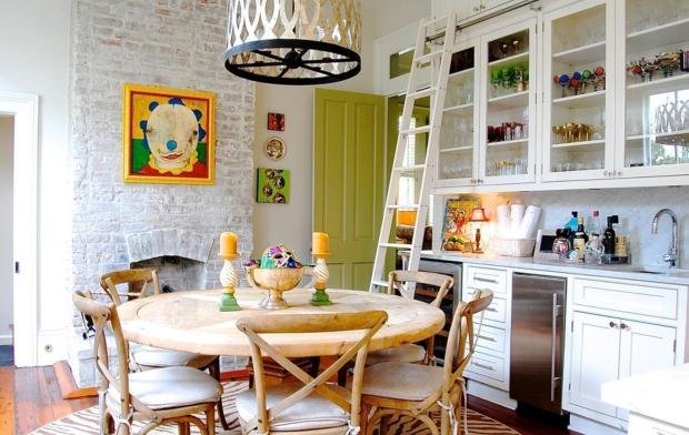 Здесь можно спокойно сочетать классический гарнитур и плитку с этническим орнаментом, изящный французский прованс и массивный обеденный стол из дерева.