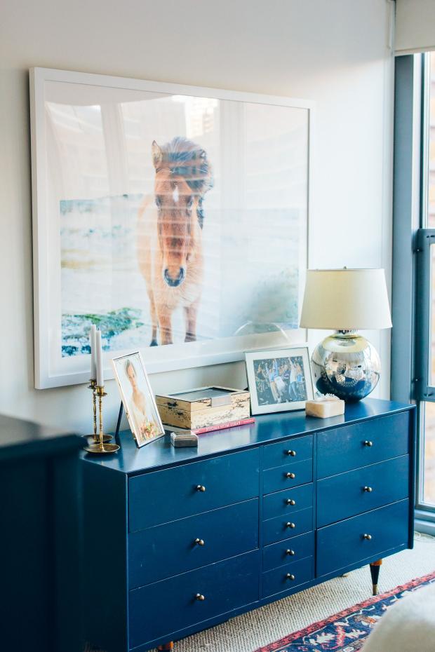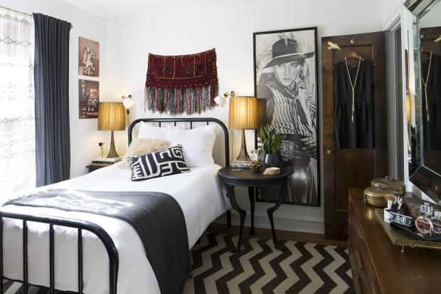 Реализовать стилистику эклектики в оформлении спальной комнаты помогут множество фото и картин, сосредоточенные на стене за изголовьем кровати. Они внесут зрительное разнообразие, но за счет концентрации в одном месте не будут раздражать глаз.