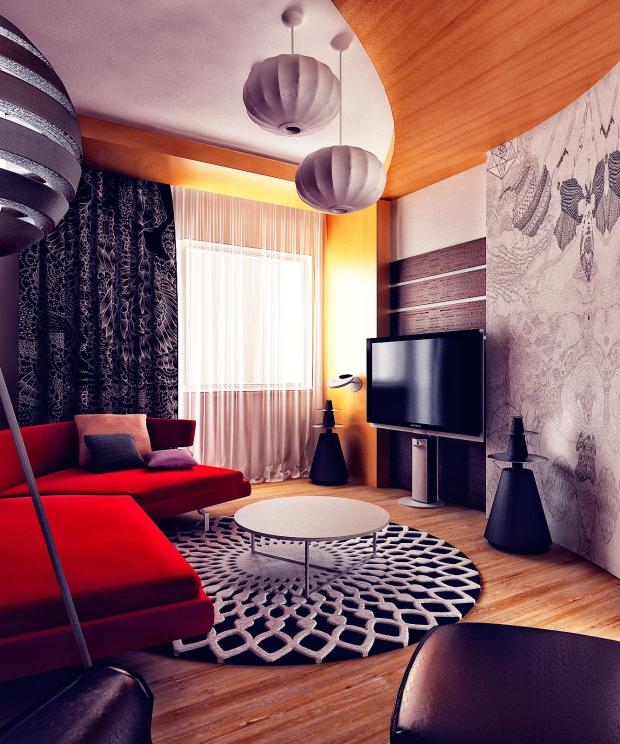 Подбирают их по двум принципам: сходству с основным убранством комнаты (тогда нужен повтор текстур, орнаментов, палитры) или, наоборот, контрасту. Второй вариант свойствен стилю эклектики в квартире с акцентированным вниманием на аксессуары.
