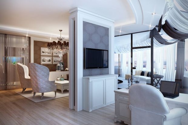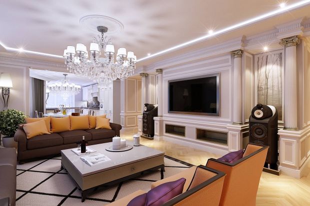 В дизайне интерьера квартир современная классика предполагает зонирование с выделением одного большого помещения – гостиной. Это логический центр всей композиции, с переходами из одного помещения в другое. Дверные проемы в этом случае можно оформить арками, а для внутренних условных границ использовать колонны или полуколонны. Светлые и высокие потолки, наличие крупных оконных проемов обеспечат хорошую инсоляцию.