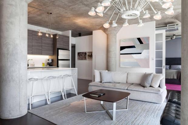 | Освещение | Скрытая подсветка выразительно оформляет потолочные уровни, регулируемые софиты направляют внимание на нужные зоны. Подвесные лампы и напольные торшеры берут на себя задачу декорирования и зонирования. Центральной люстры может не быть. В самом минималистичном варианте получится обойтись встроенными точечными светильниками. |