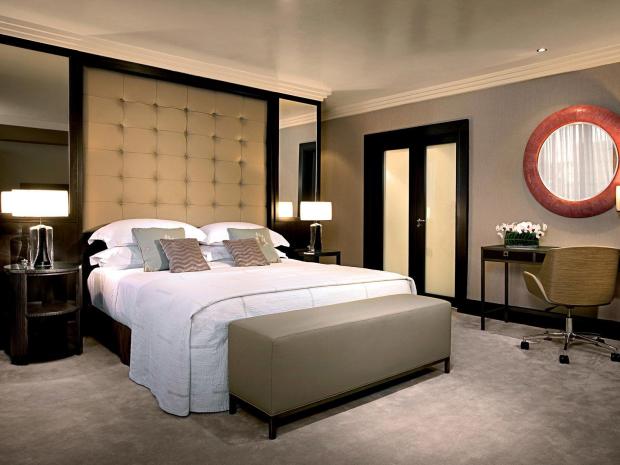 | Аксессуары и декор | Приемы для оформления зоны изголовья – рельефные панно, кожаная стегая панель, подсвеченная ниша с жалюзи. Приставленные к стене напольные зеркала добавят помещению объема. |