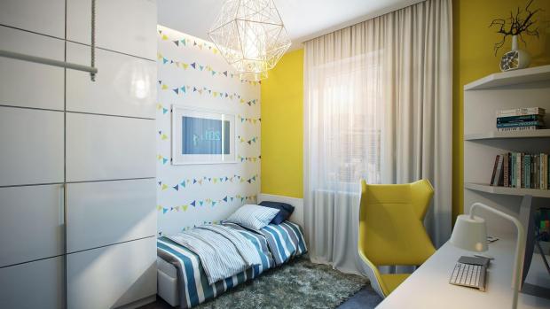 Обязательно многоуровневое освещение: в активное время суток будет доступна любая зона комнаты (рабочая, игровая), перед сном понадобится мягкий расслабляющий свет. С задачей справятся центральная люстра, точечные источники по периметру, настольные лампы, бра в зоне кровати. |