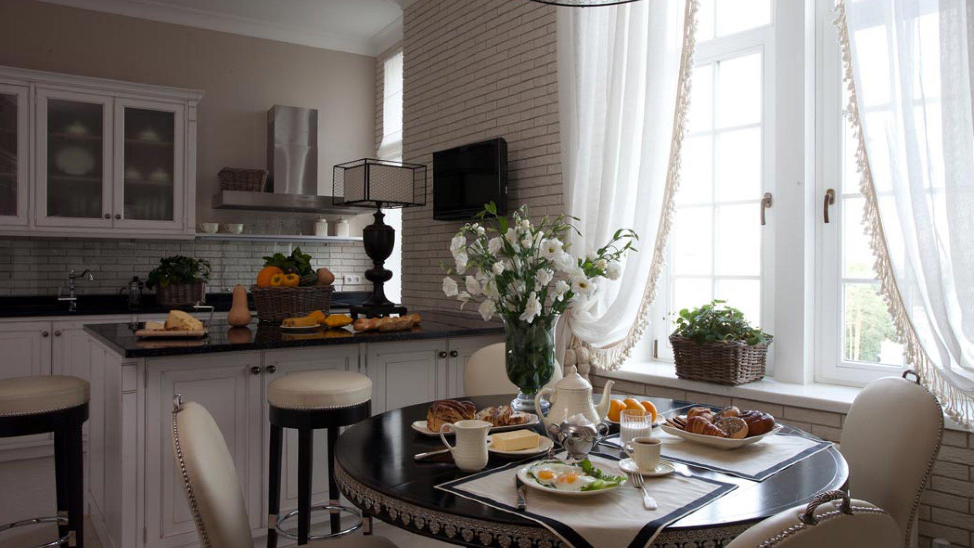 Удачно реализовать традиционный стиль в интерьере в бежевых тонах поможет принцип «тон в тон». За счет использования оттенков разной насыщенности на стенах, фасадах, мебельной обивке, штор в комбинации со светлым фоном обстановка получит глубину и выразительность. На двух последних фото – примеры такого решения.