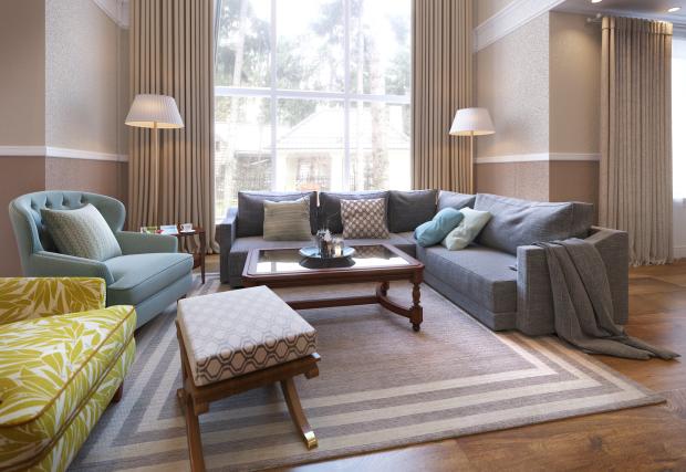 Домашняя классика предпочитает приглушенные, пастельные тона, с уместным дополнением более насыщенных акцентов.