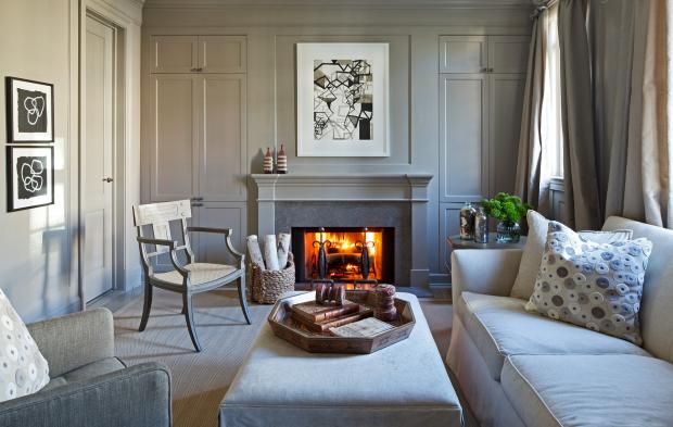 Подчеркнуть акцентный участок можно композицией картин, графики. - Типичный элемент – камин, в квартире вполне подойдет декоративный.