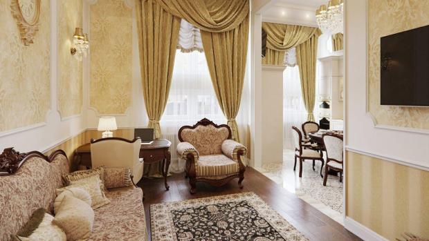 Другой, менее затратный прием – эффектные отделочные материалы в зоне гостиной. Яркие или необычные обои, декоративная штукатурка или камень, на фоне которых мягкая мебель будет смотреться особенно привлекательно.