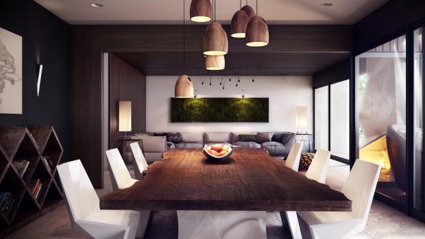Если все-таки возникает желание наполнить пространство с открытой планировкой национальными или традиционными мотивами, постарайтесь, чтобы со стороны гостиной открывался минимальный вид на кухню, или же был полностью исключен.