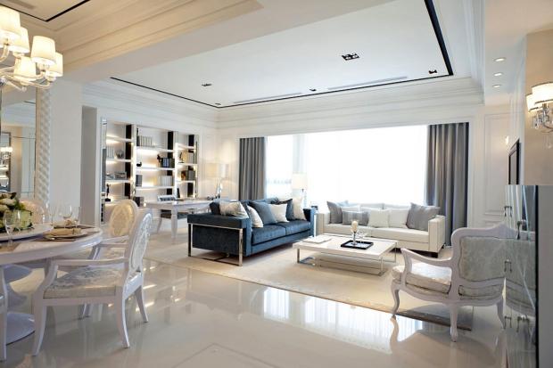 Метод открытой планировки объединяет территорию для семейного отдыха, приема гостей, дневных забот в одно просторное помещение, а приватная часть квартиры – спальни, санузлы, гардероб и кабинет изолированы.