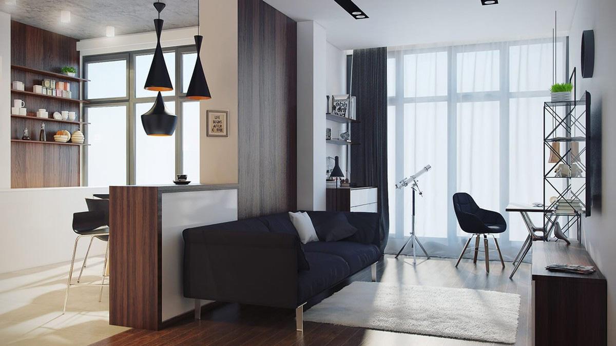 Открытая планировка квартиры может быть разграничена с помощью мебели. Развернуть диван спинкой по отношению к кухне, или поставить на границе кухни-столовой и гостиной барную стойку, подыскать эффектные дизайнерские стеллажи-стойки – самые распространенные приемы в зонировании пространства.