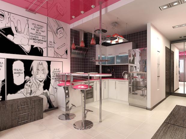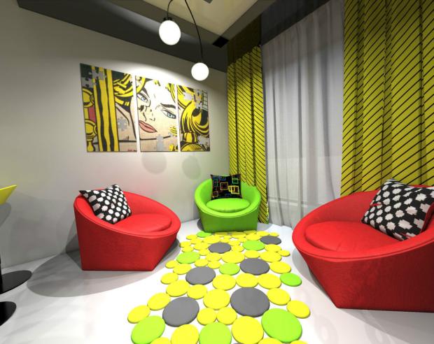 Стиль поп-арт в интерьере проявляется следующим образом: