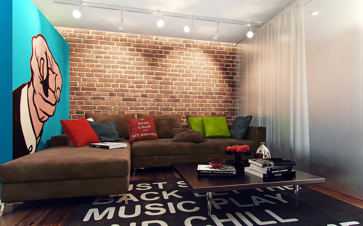 Стиль поп-арт в интерьере проявляется следующим образом: