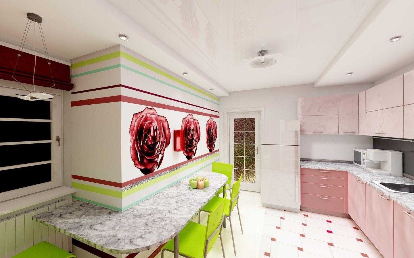 - Потолок делают с глянцевым блеском и светлым с точечным светодиодным освещением. Он может быть одноуровневым либо же многоуровневым. Допустимы комбинации цветов потолка, например, белый и красный, белый и черный. Белый цвет чаще всего преобладает.