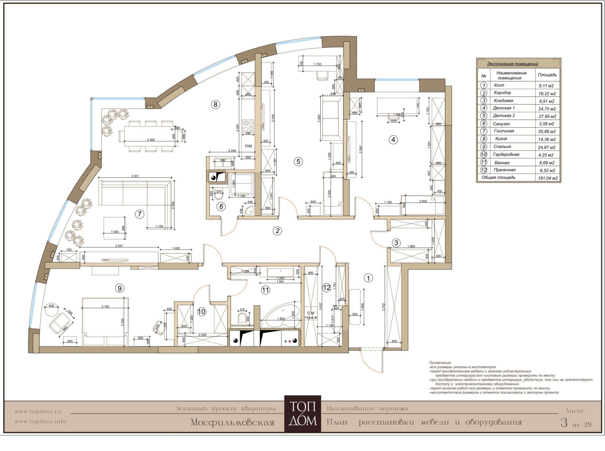 — спецификация дверных проемов- план расстановки мебели и сантехнического оборудования