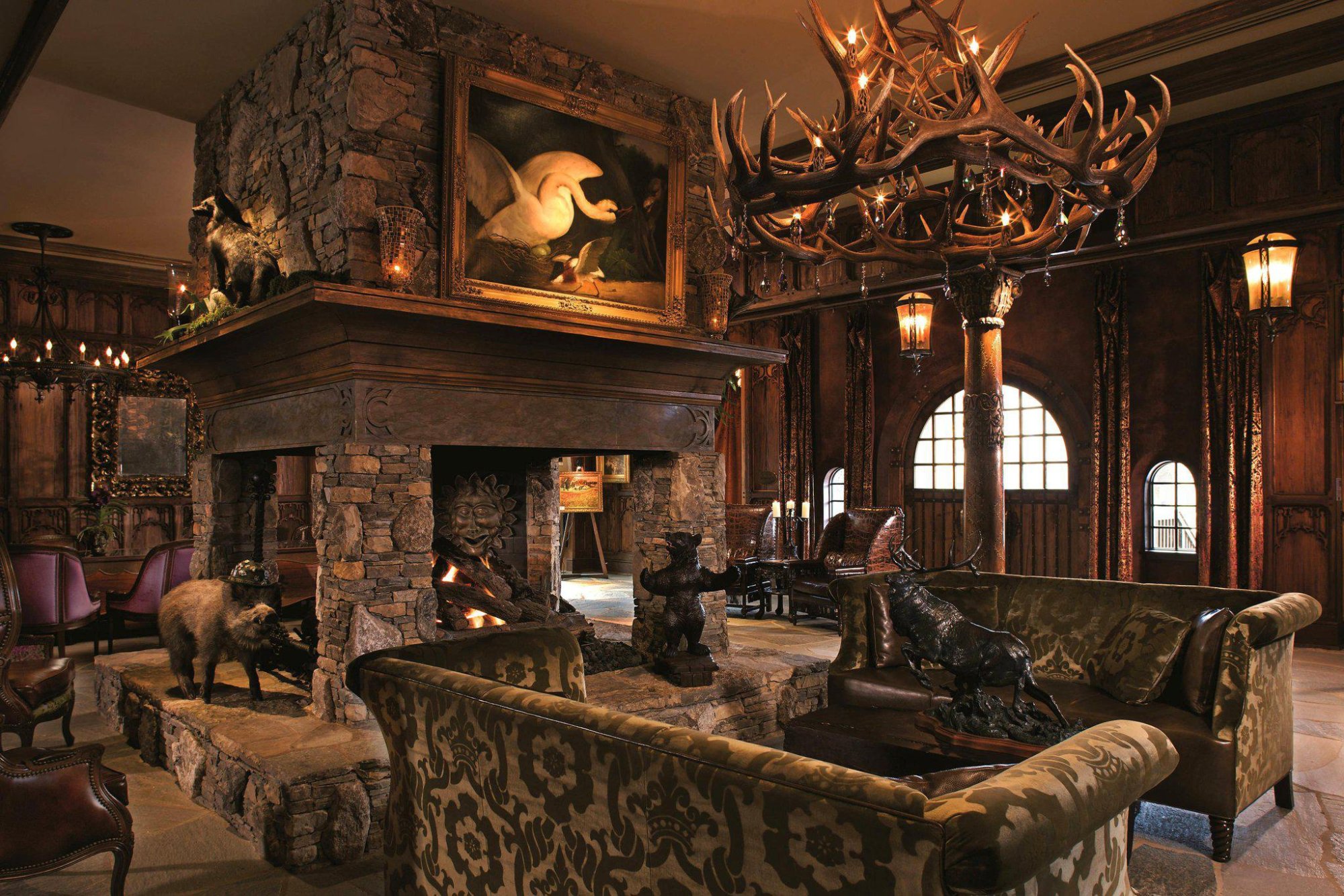 Потрясающий интерьер в замковом стиле невозможно представить без характерных предметов декора. Стены оформляют масштабными гобеленами и живописными полотнами в мощных рамах. Сундуки и диваны прикрывают мягкими шкурами (искусственный мех вполне подойдет). По сторонам камина принято вешать старинное оружие, щиты, геральдическую символику. Завершающий штрих – рыцарские доспехи в углу комнаты.