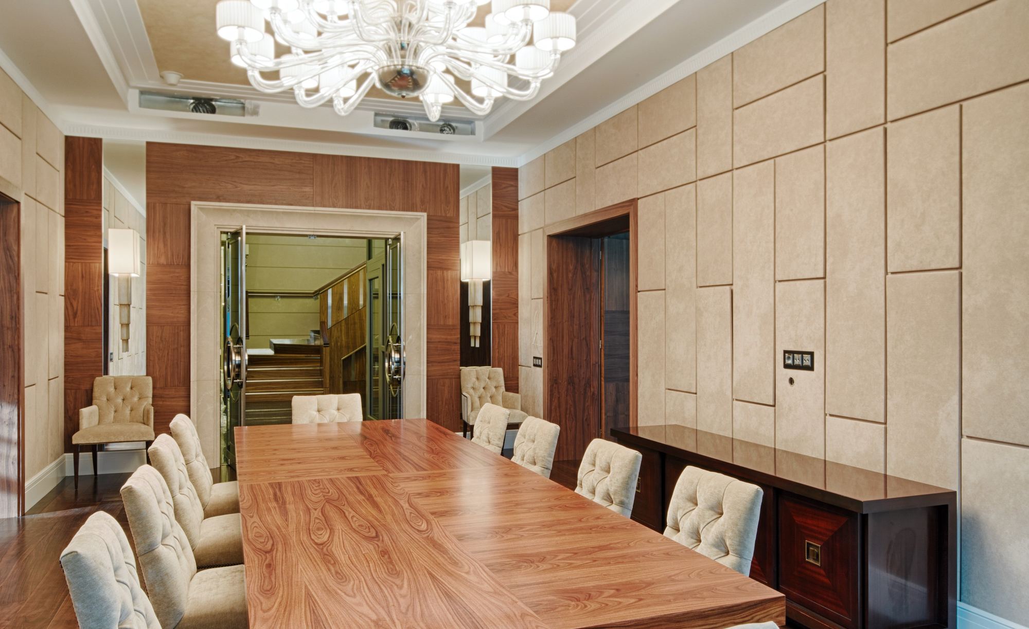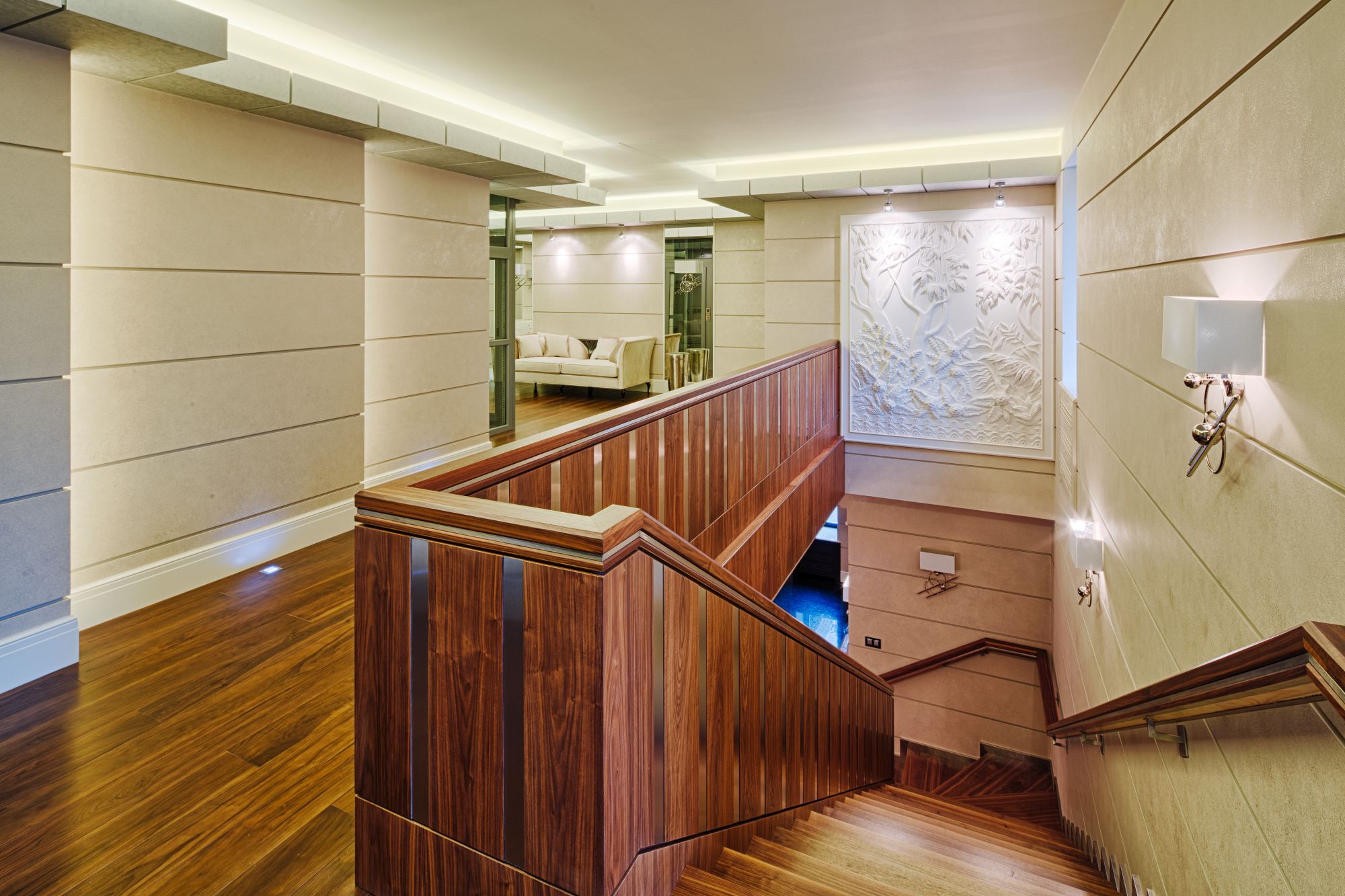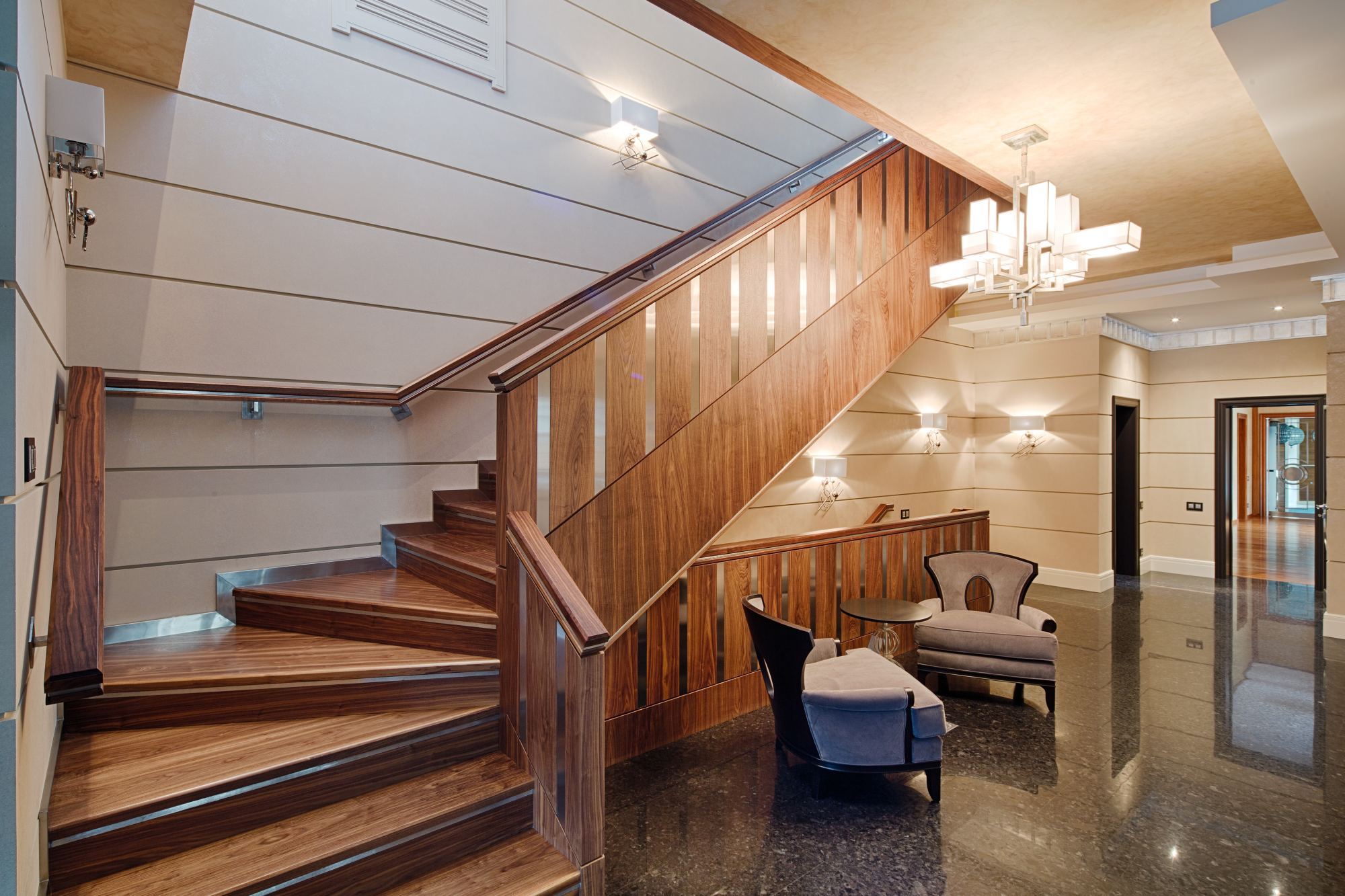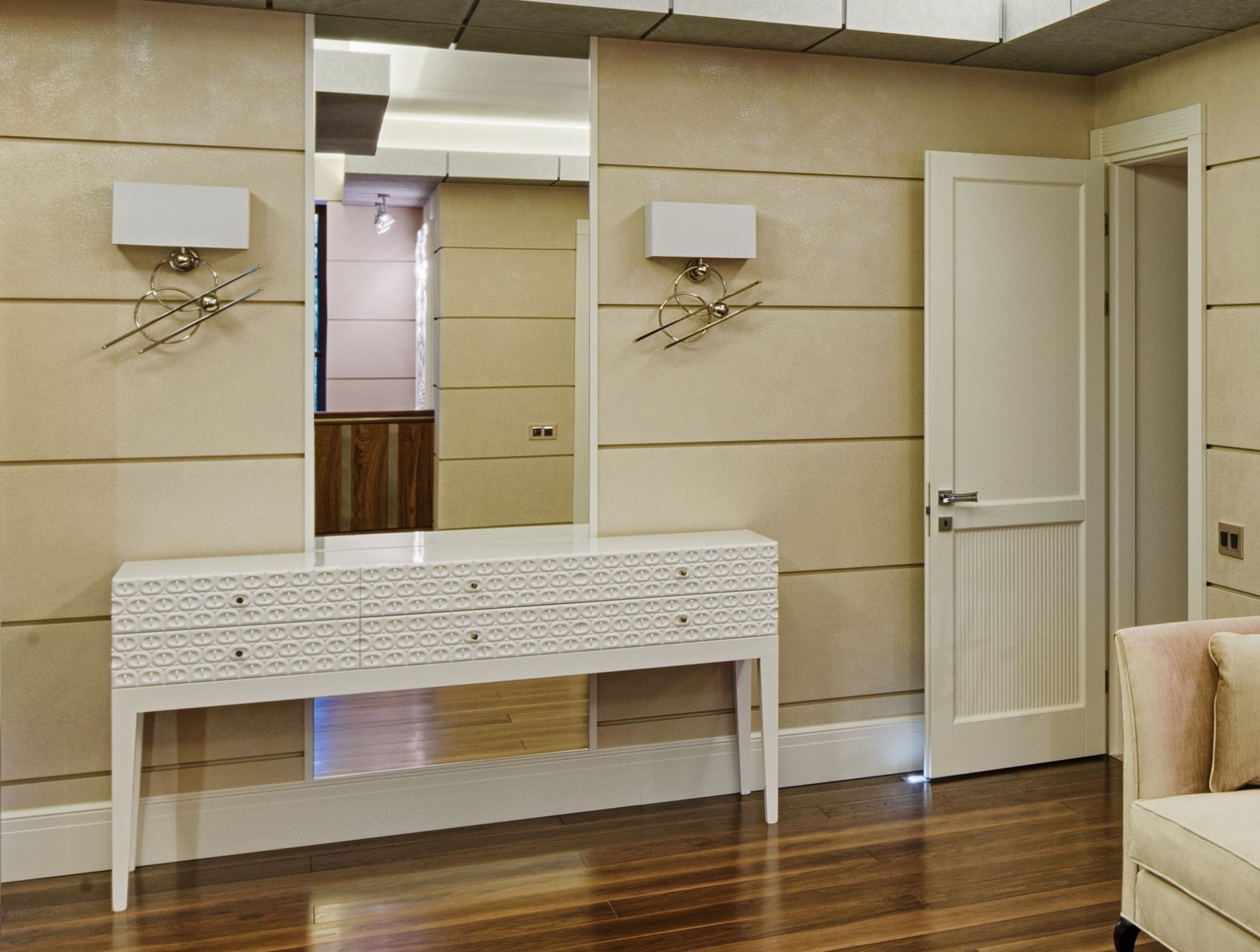 Стеновые панели цвета слоновой кости в отделке холла 2 этажа