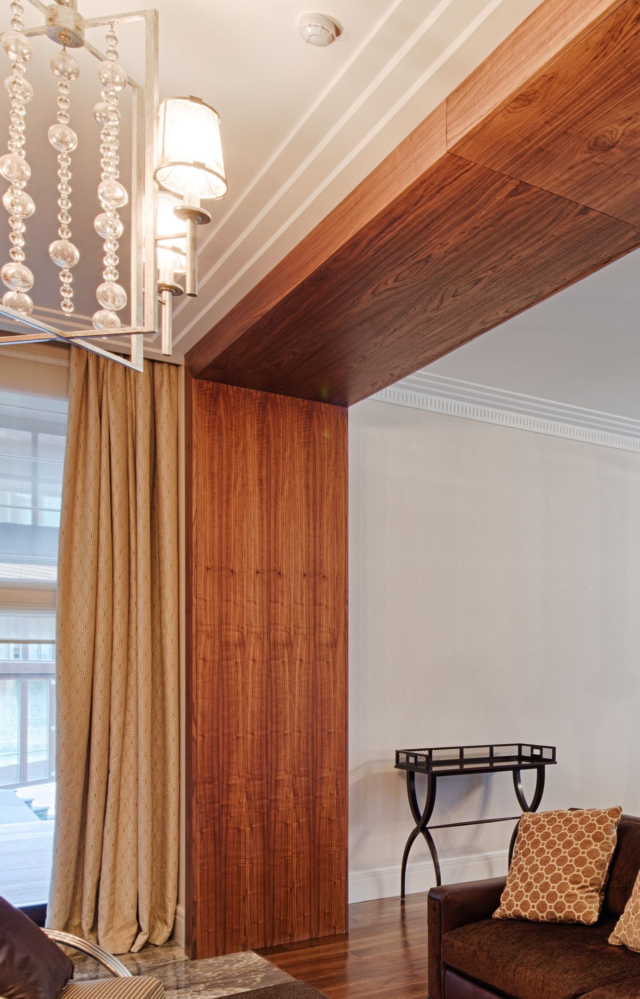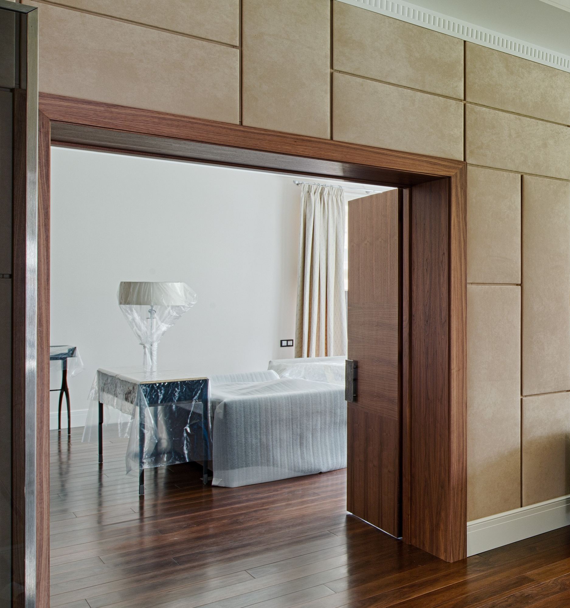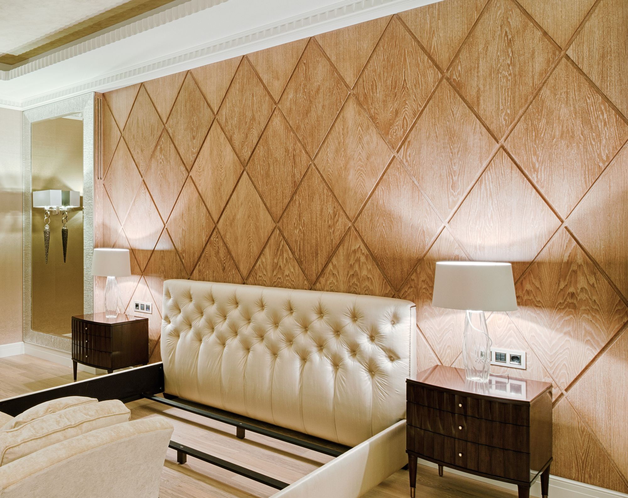 Декорирование стен спальни деревянными ореховыми стеновыми панелями