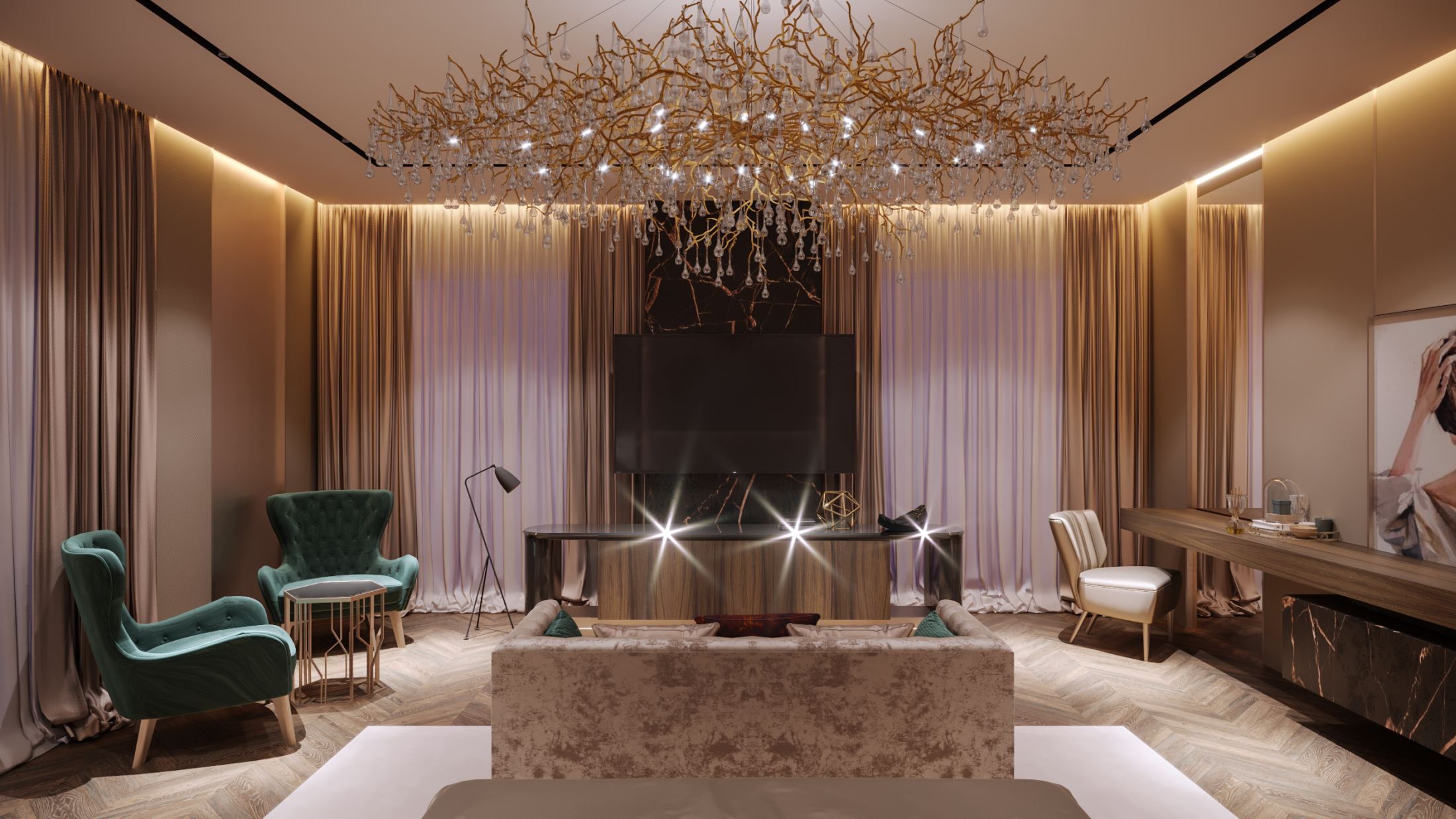 Второй свет позволяет включить в обстановку предметы и аксессуары, которые не подходят для стандартного помещения: массивную мебель, живые комнатные деревья, огромные зеркала, длинные многоярусные люстры, объемный оконный текстиль.