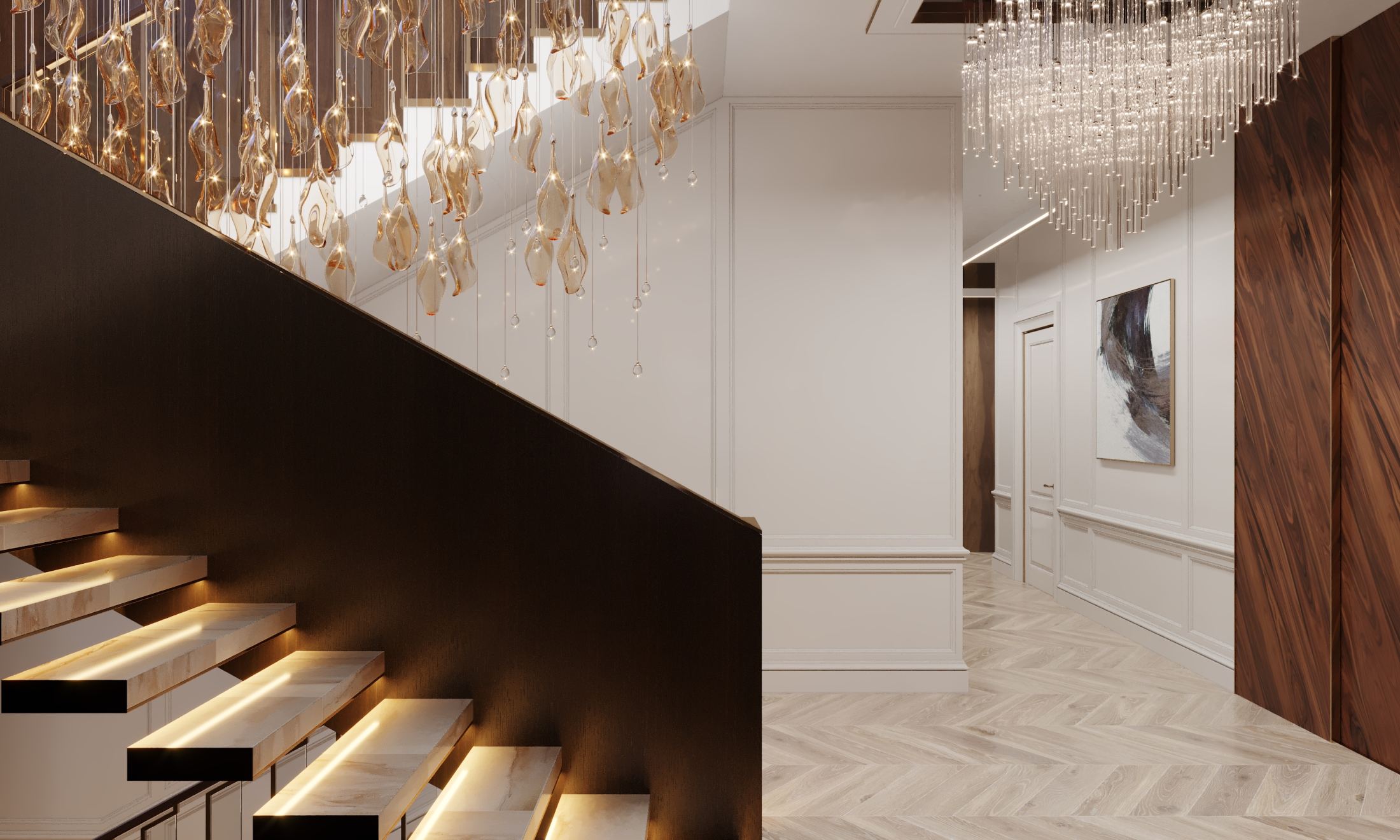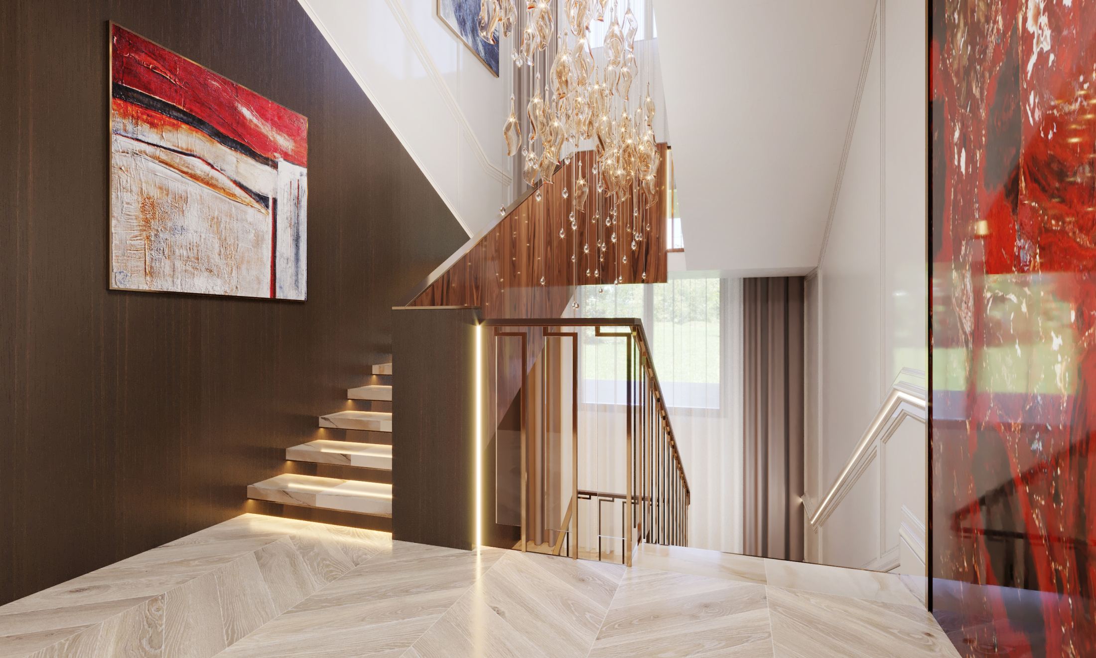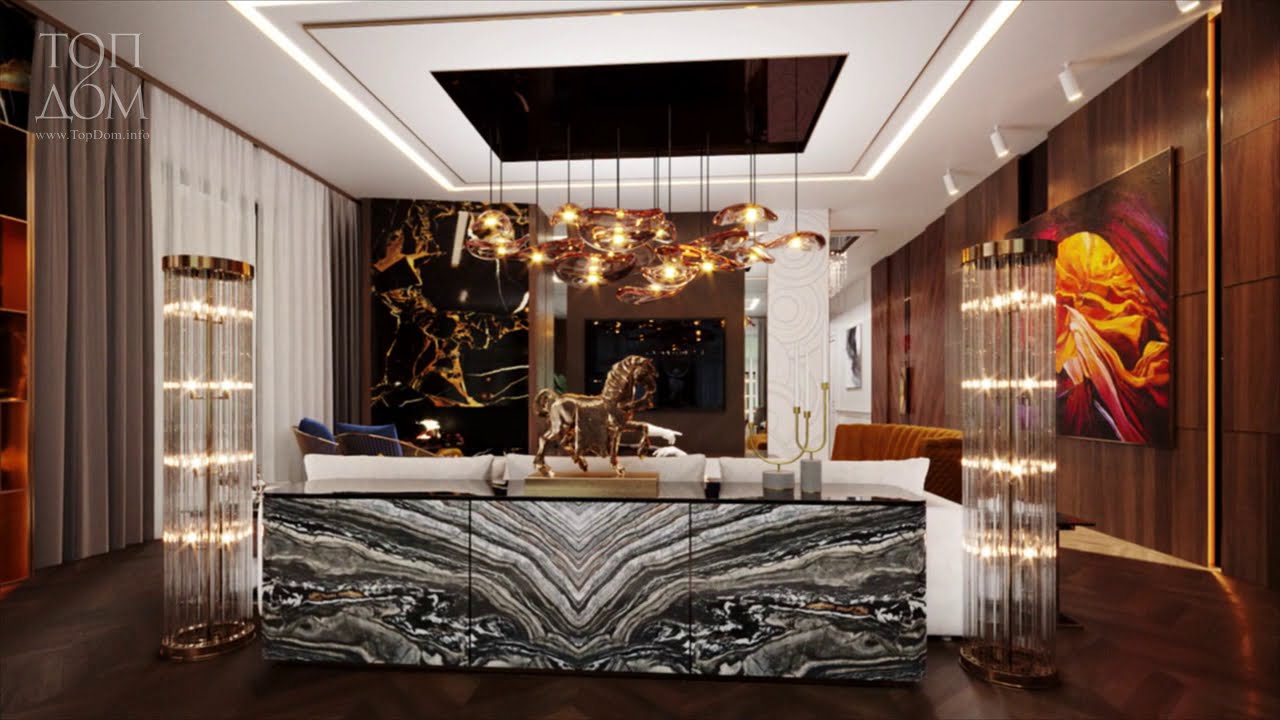 В рамках ремонта под ключ дизайнеры «ТопДом» разработали внутреннюю отделку для двухэтажного коттеджа общей площадью 700 кв. м.