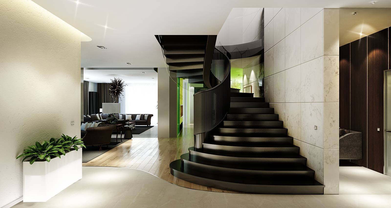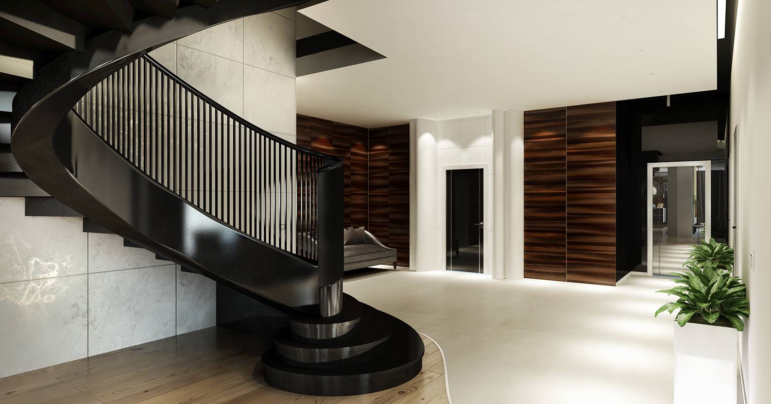 В основе идеи современного дизайн-проекта – арт-деко, с дорогими и качественными материалами, монохромной гаммой, тонким сочетанием роскоши и эксклюзивности в деталях.