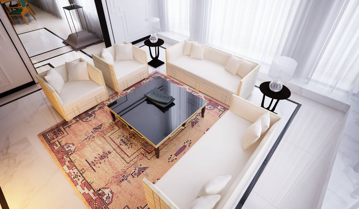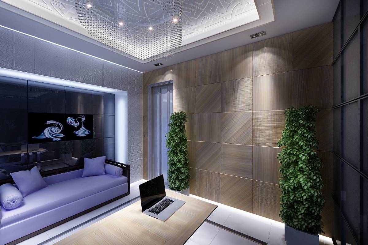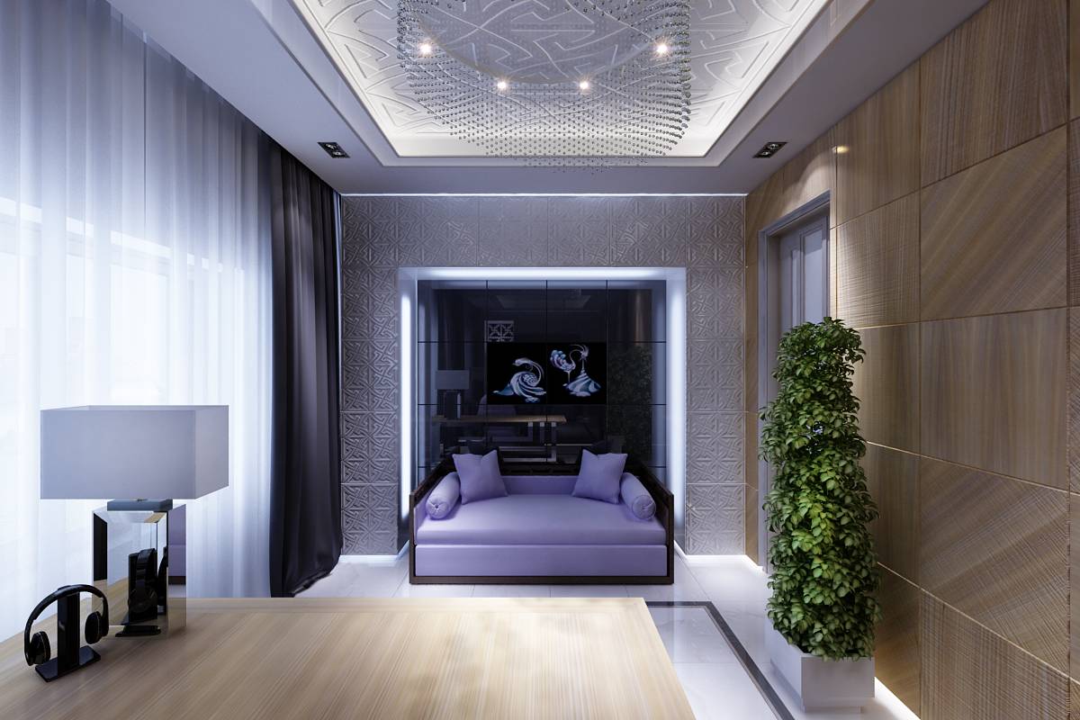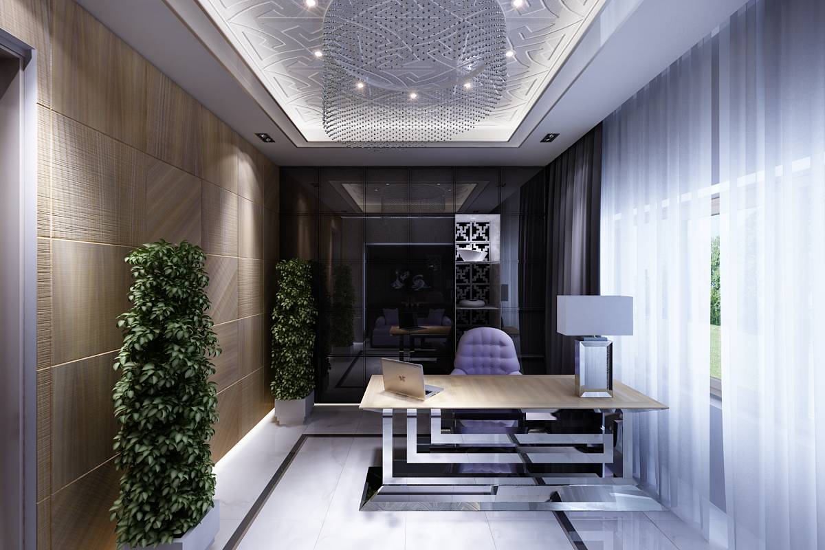 В основе дизайна интерьера дома – подчеркнутое обращение к геометрическим формам. В декоре напольного покрытия, объемных потолков, оформлении дверных проемов во всех комнатах легко читаются прямые углы, обозначенные контрастными кантами.