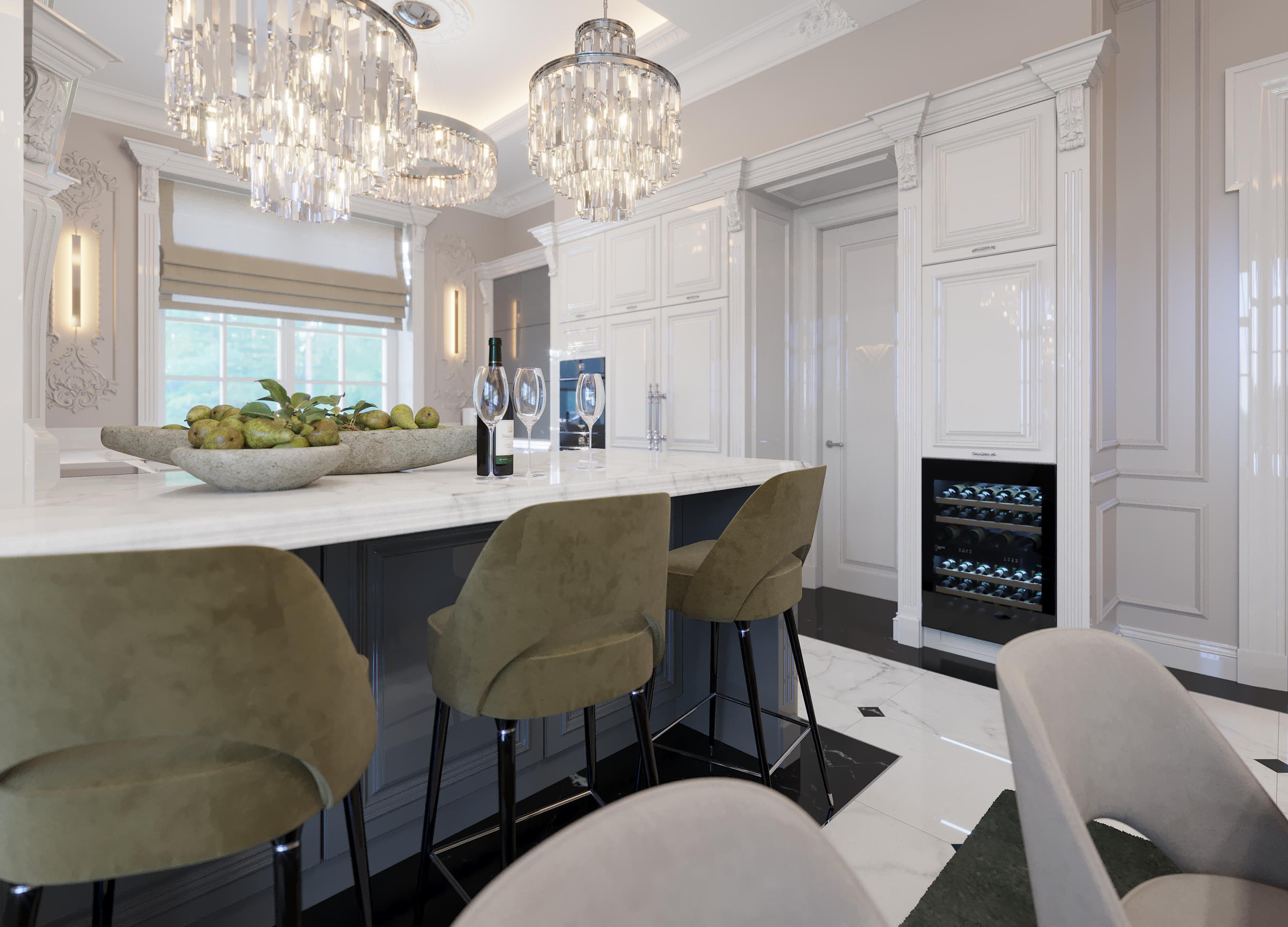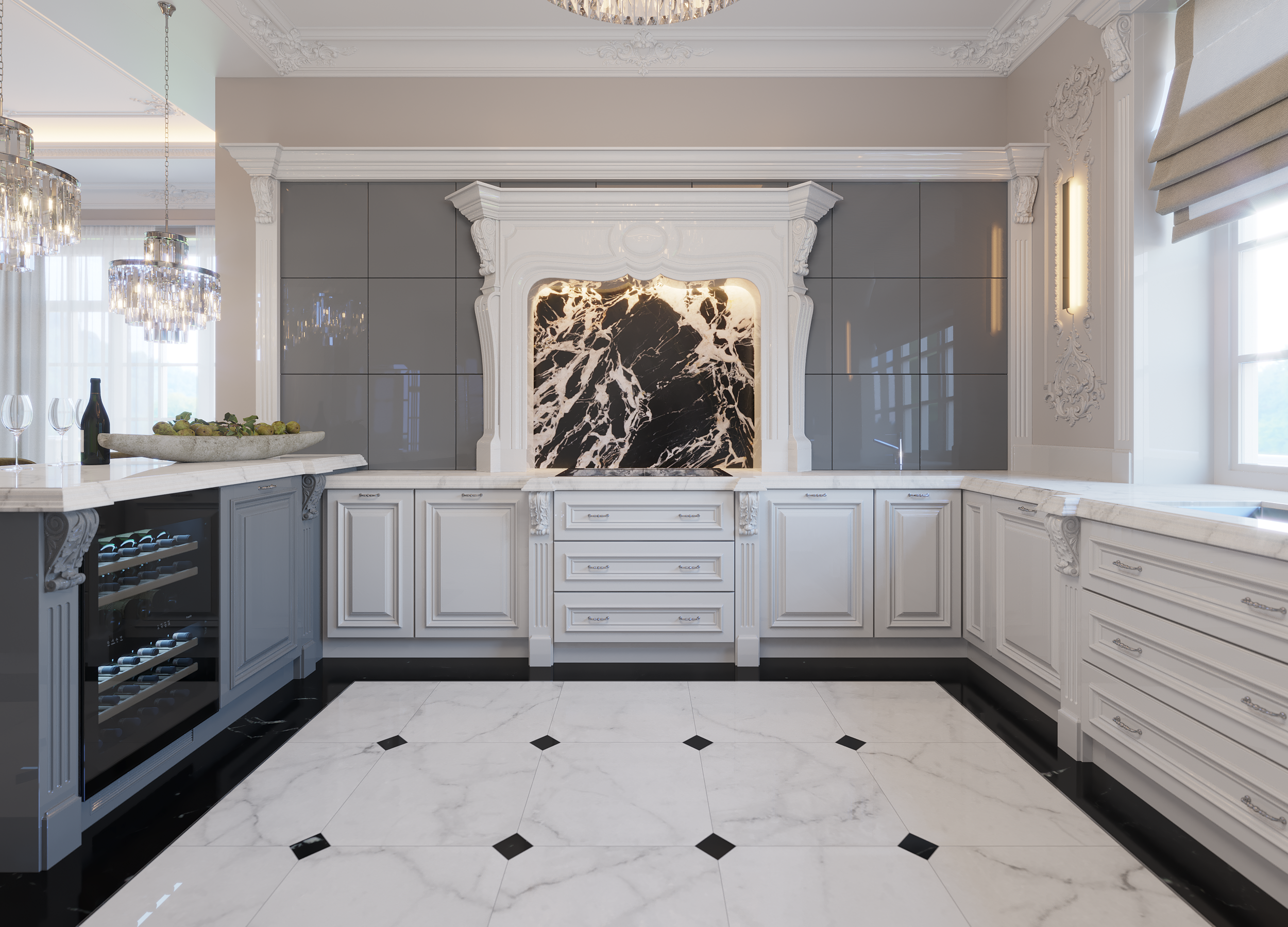 Классические кухонные фасады в интерьере кухни
