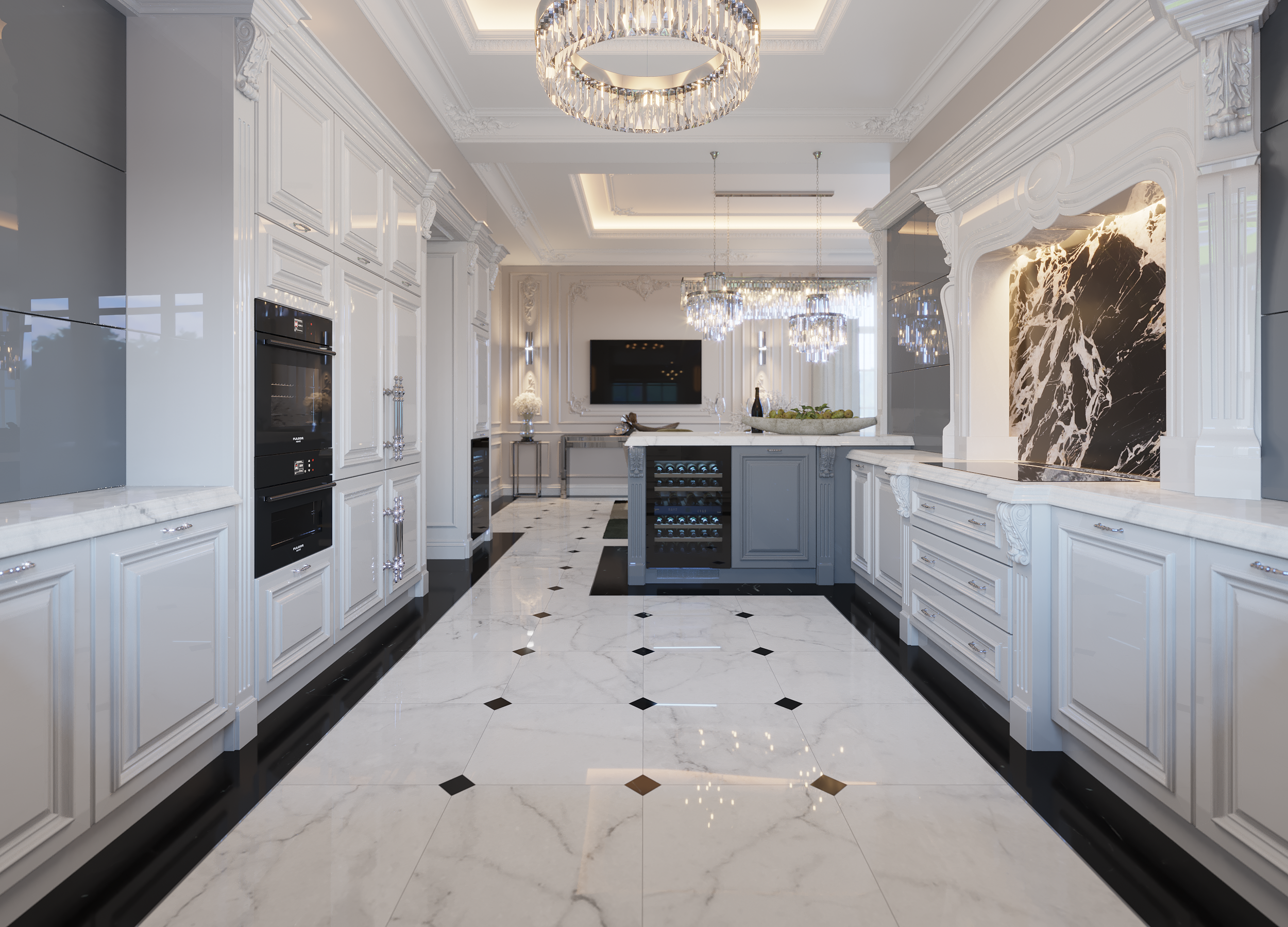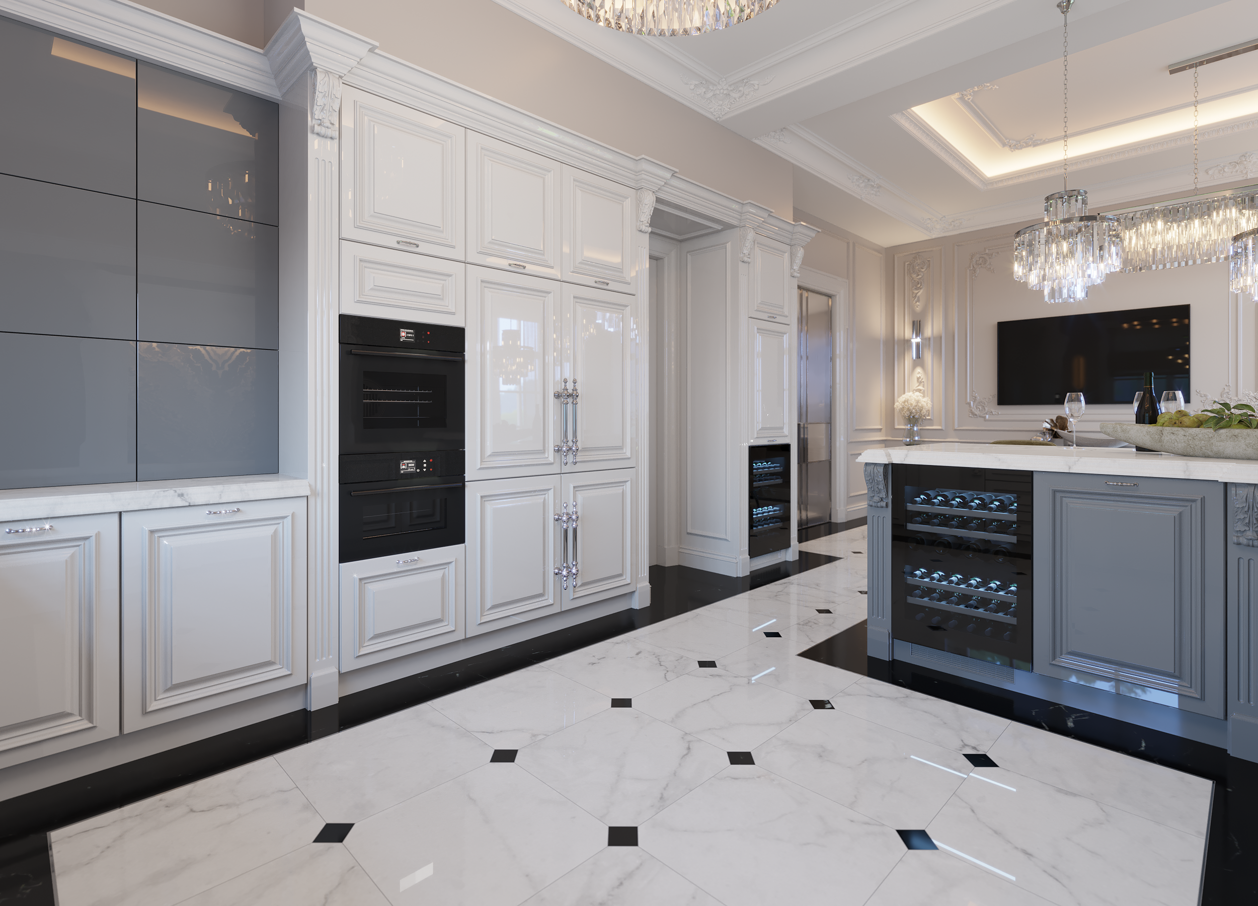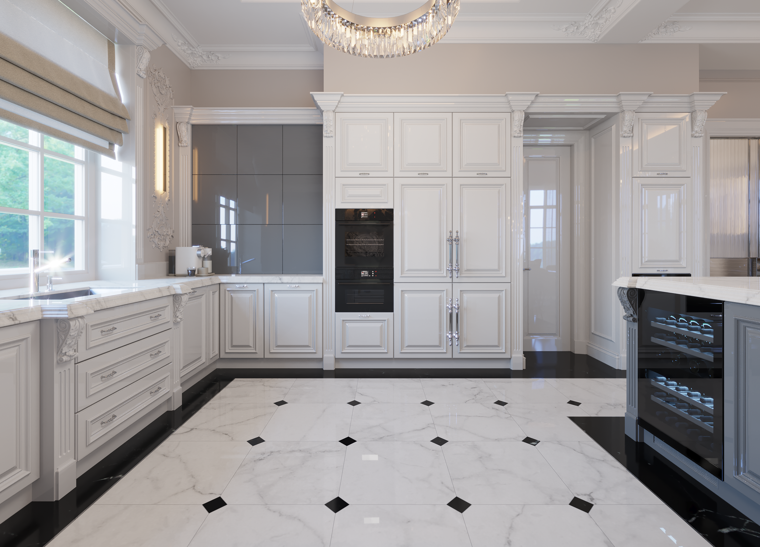 Классические белые фасады кухни