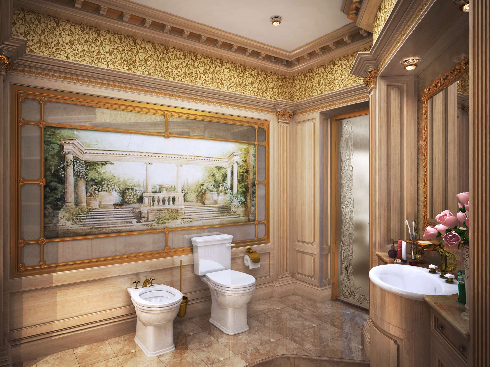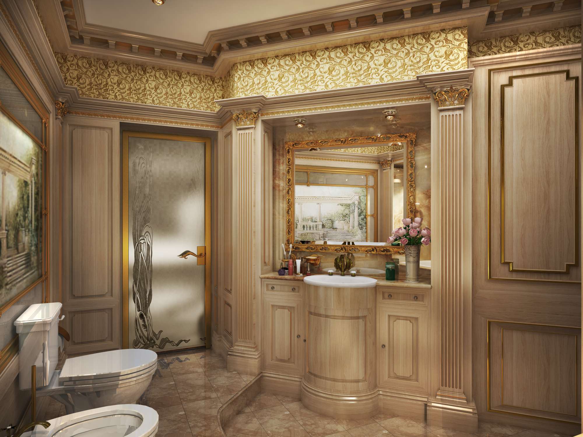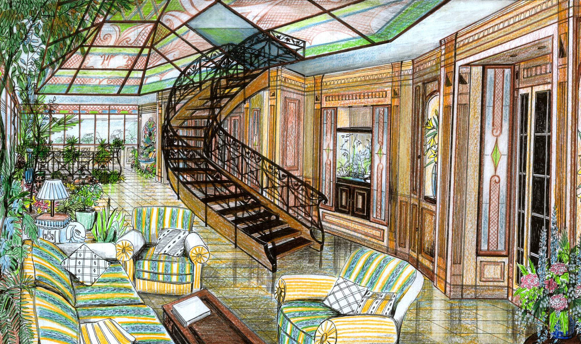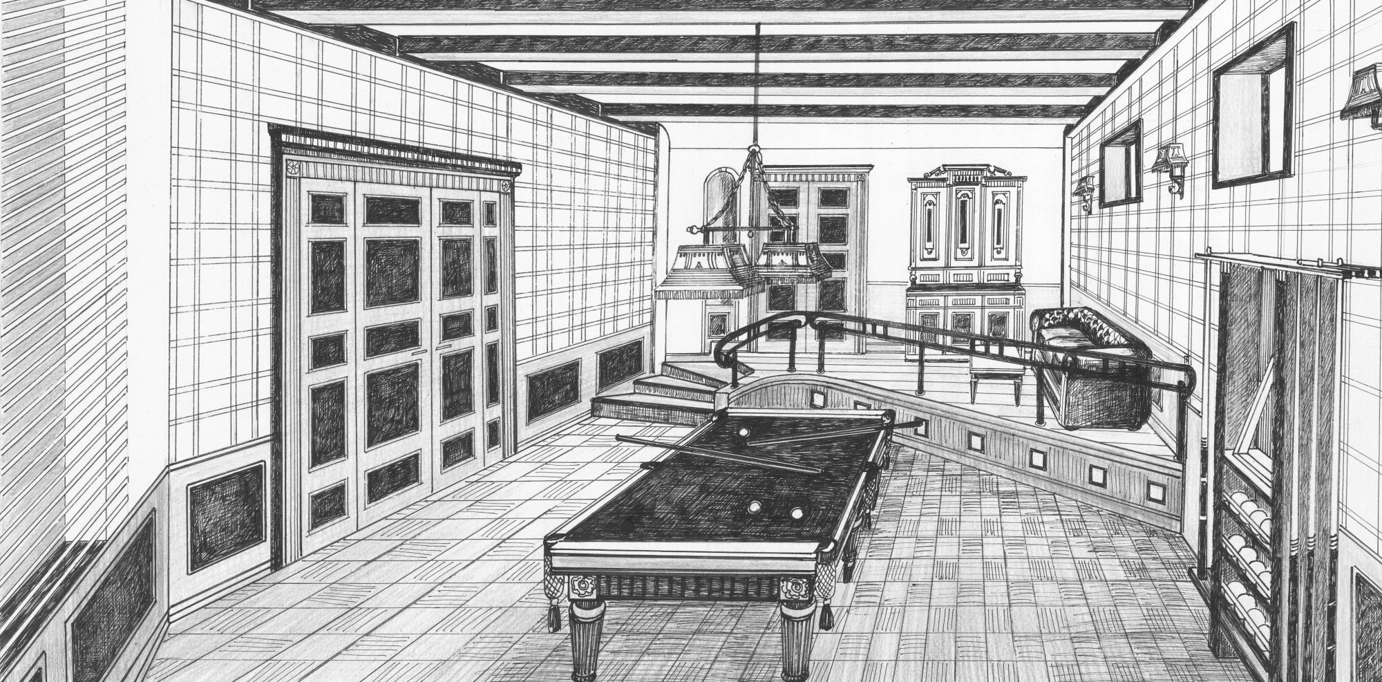 Характерные мотивы продолжены в интерьере кухни, бильярдной, вестибюля и соседней с ним проходной комнаты.