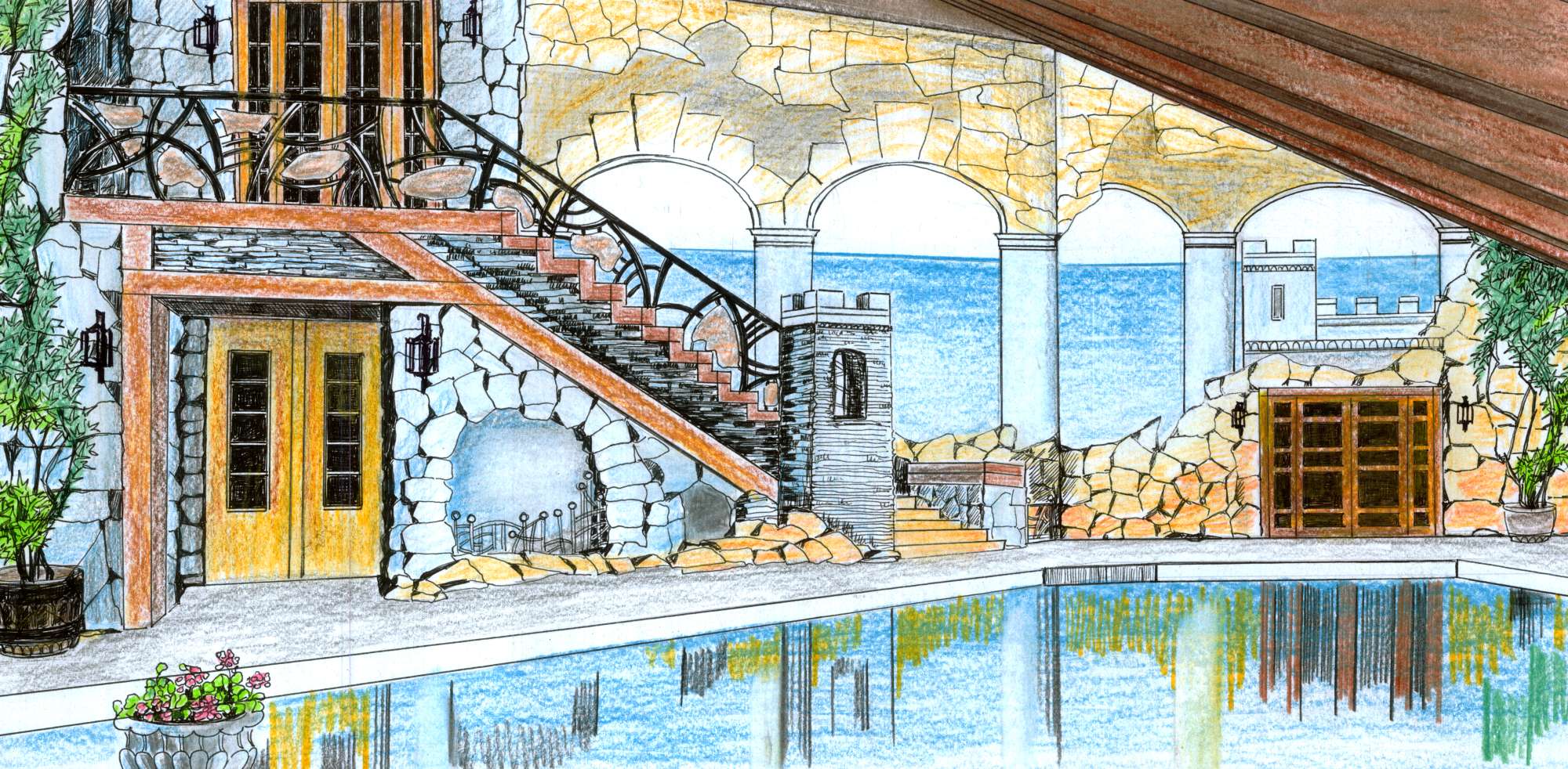 Отдельного упоминания достоин бассейн. В одном из вариантов разработки дизайн-проекта дома это помещение стилизовано под доисторическую пещеру с наскальными рисунками, в другом – получает атмосферу солнечного Средиземноморья, в третьем – напоминает заросший плющом греческий дворик.
