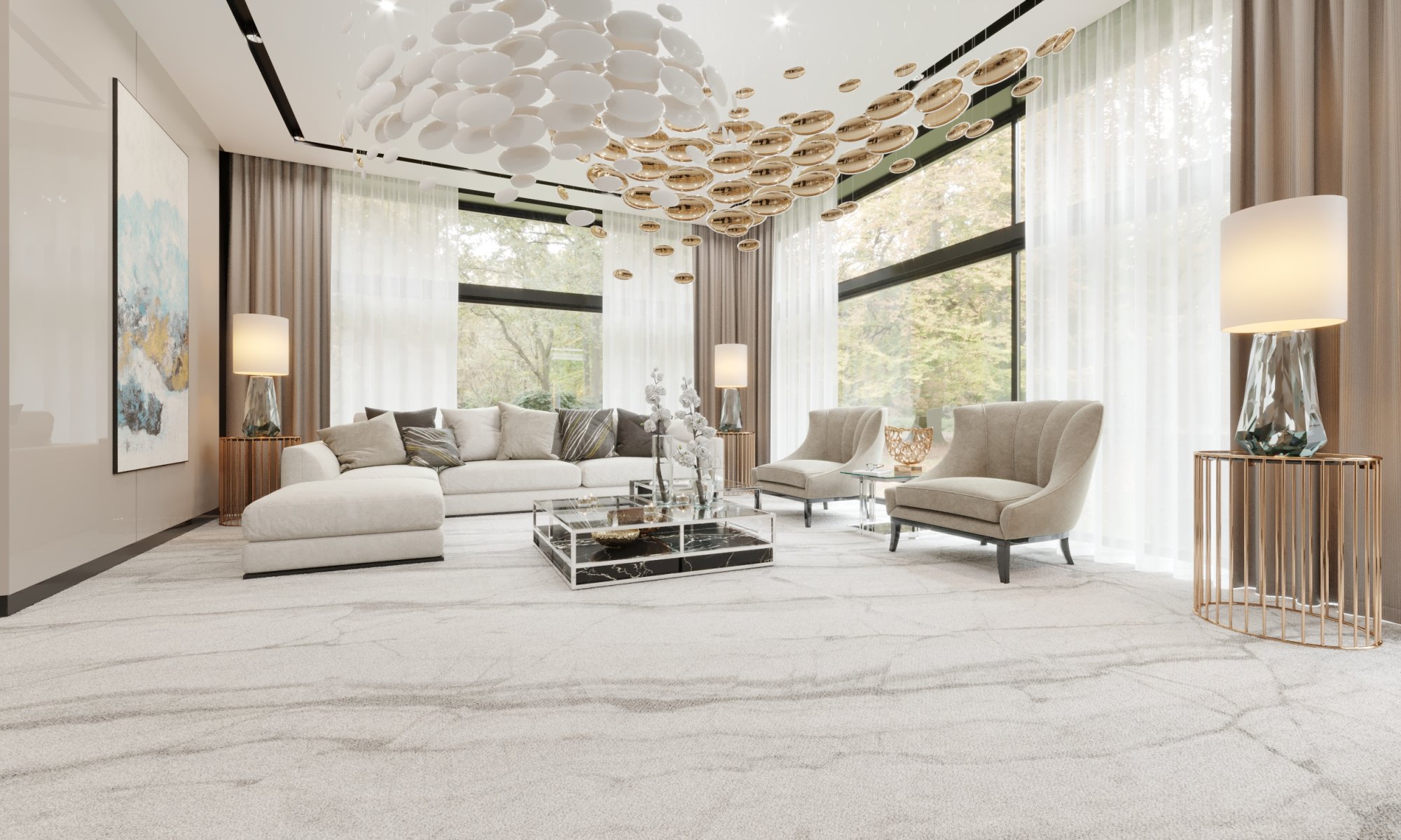 Грейдж не перетягивает одеяло на себя, позволяя использовать в интерьерах, в том числе, и яркие акцентные пятна.