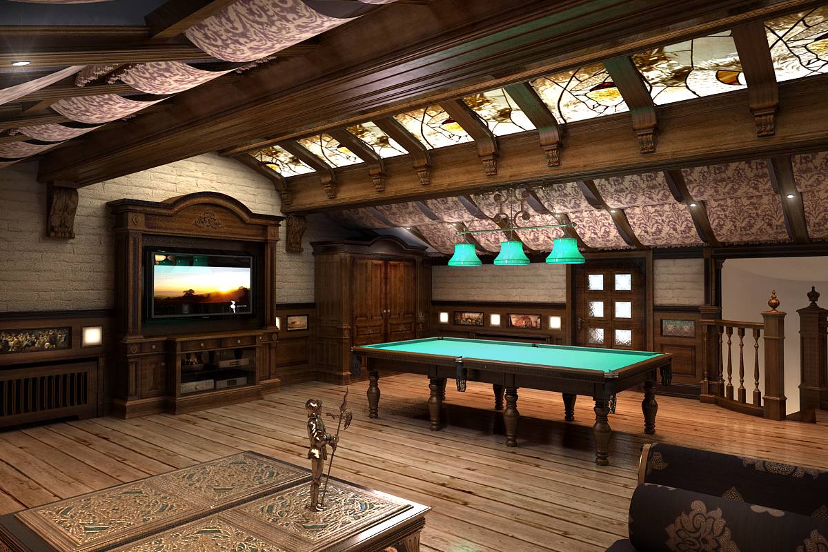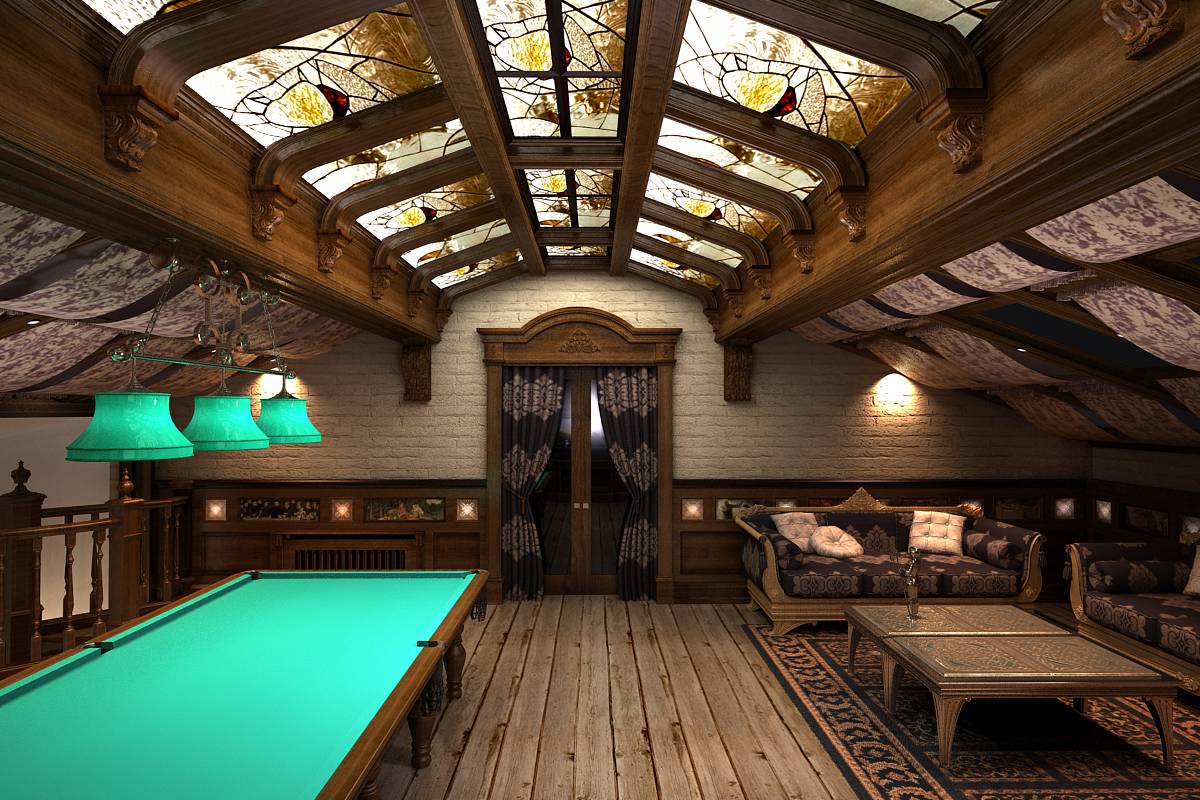Бильярдная располагается на мансардном этаже.