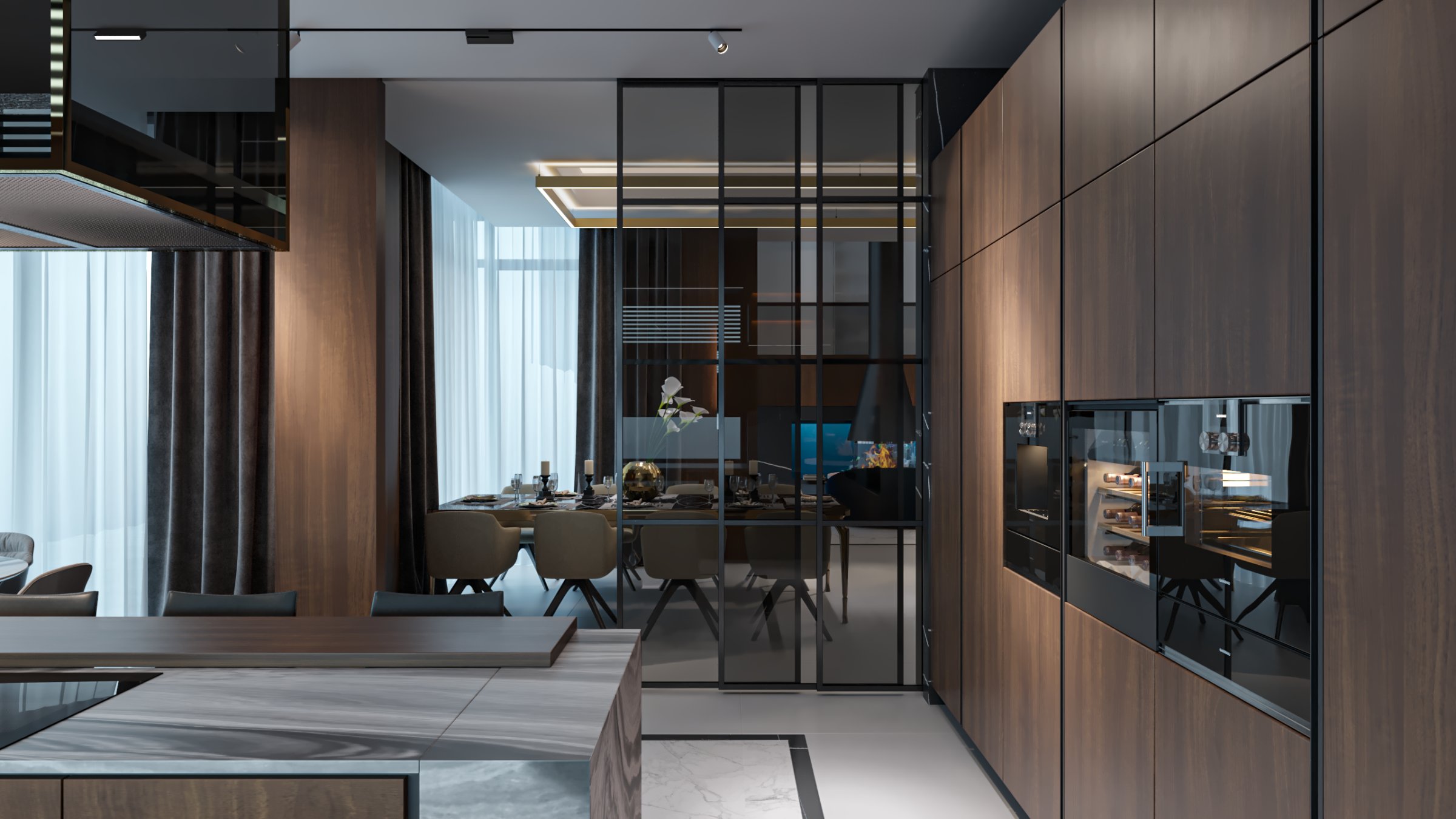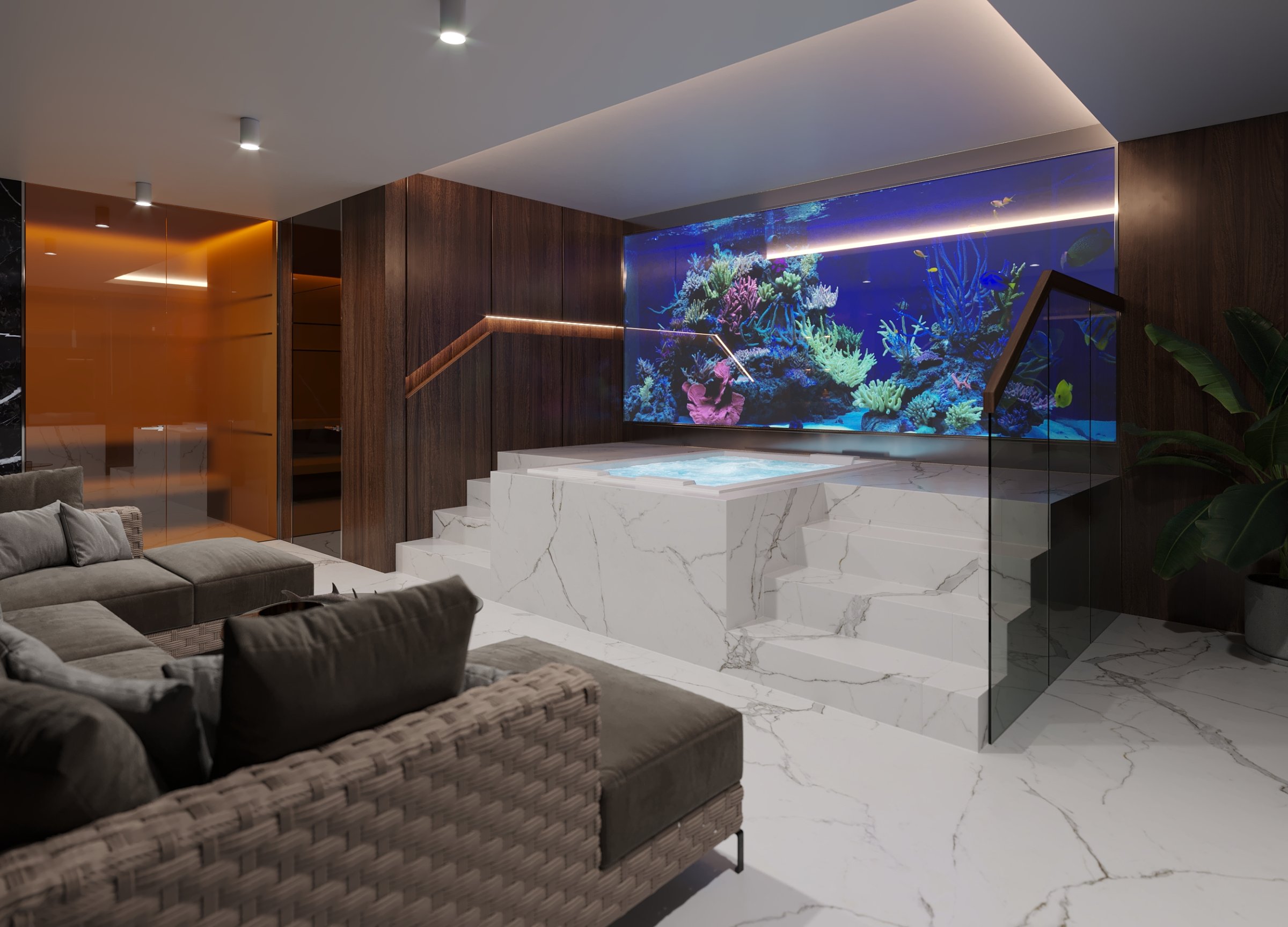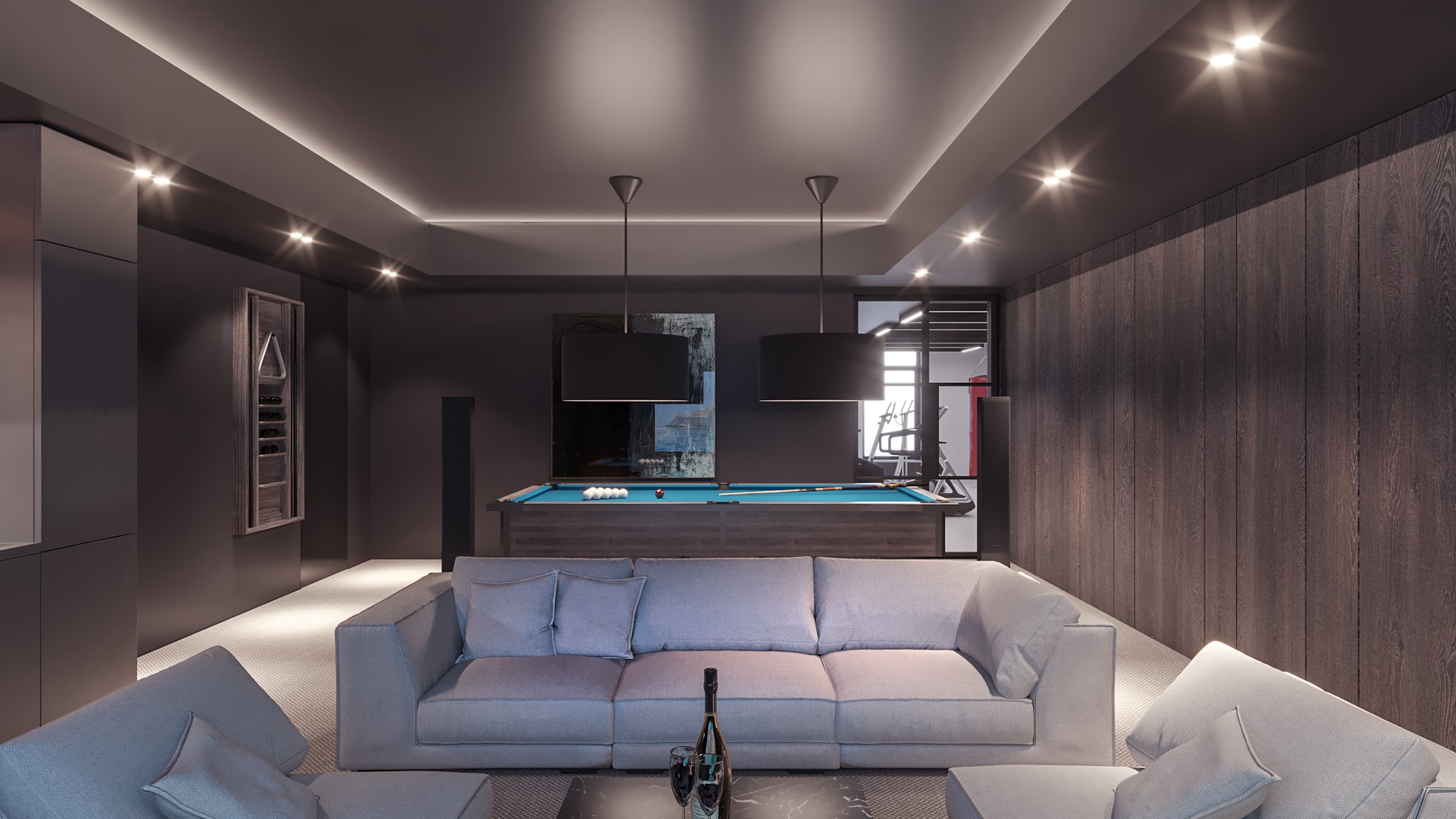 Коричневый интерьер бильярдной комнаты с отделкой деревом