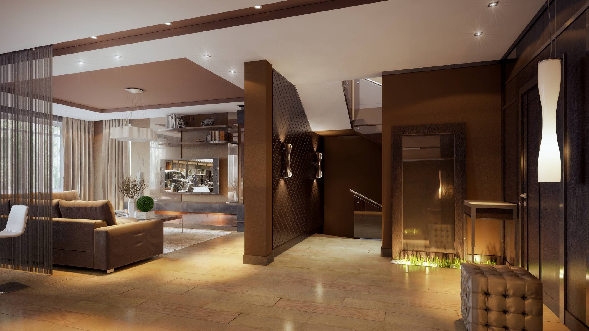Выразительные коричневые, бежевые оттенки стали основой дизайна таунхауса в минималистском стиле. Интерьер строится на сочетании прямолинейных форм, больших окрашенных площадей и отделки деревом, зеркалами, фактурными панелями.