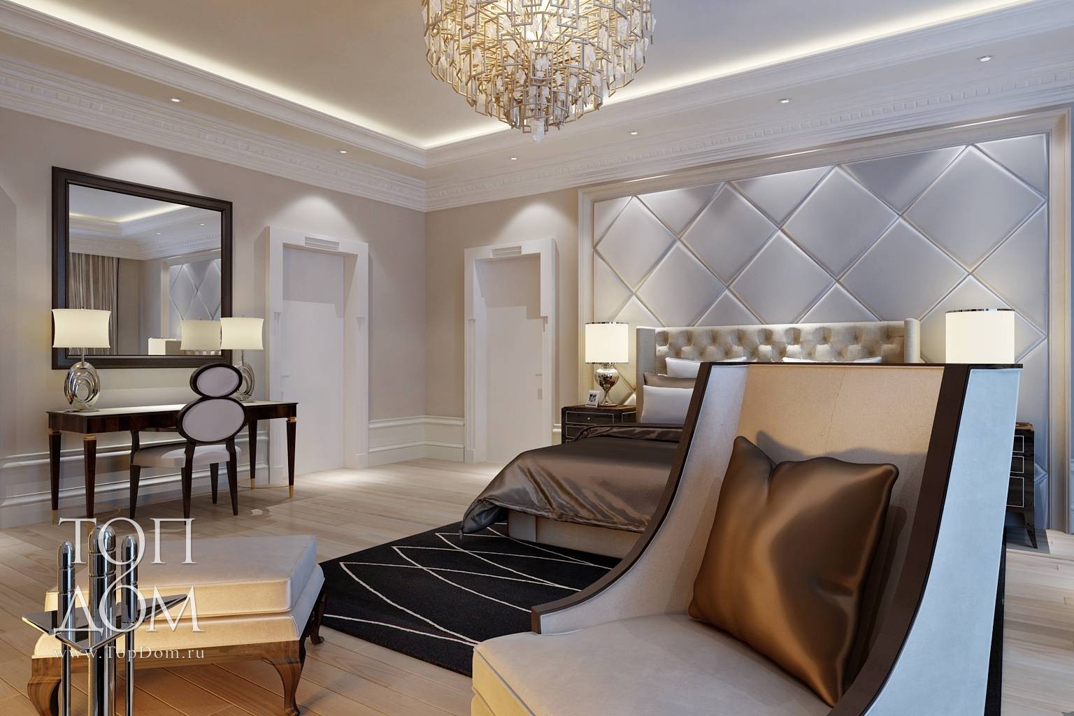 Необычно отделана зона изголовья: объемными мягкими панелями с диагональной раскладкой. А само изголовье с боковыми сегментами украшено простежкой капитоне. Приятные тактильные ощущения дополняются нежным сливочным оттенком обивки.