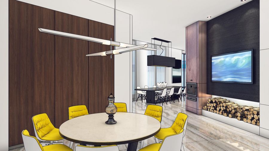 Демонстрирует окончательный вариант интерьерного проекта жилого дома в формате 3D-моделирования. Использует подготовленные чертежи и схемы, планы расстановки мебели, эскизы. Объемные изображения дают возможность рассмотреть каждое помещение с разных ракурсов, понять, как будет выполнено зонирование, увидеть, как и куда падает свет, насколько хорошо сочетаются мебель и декор.