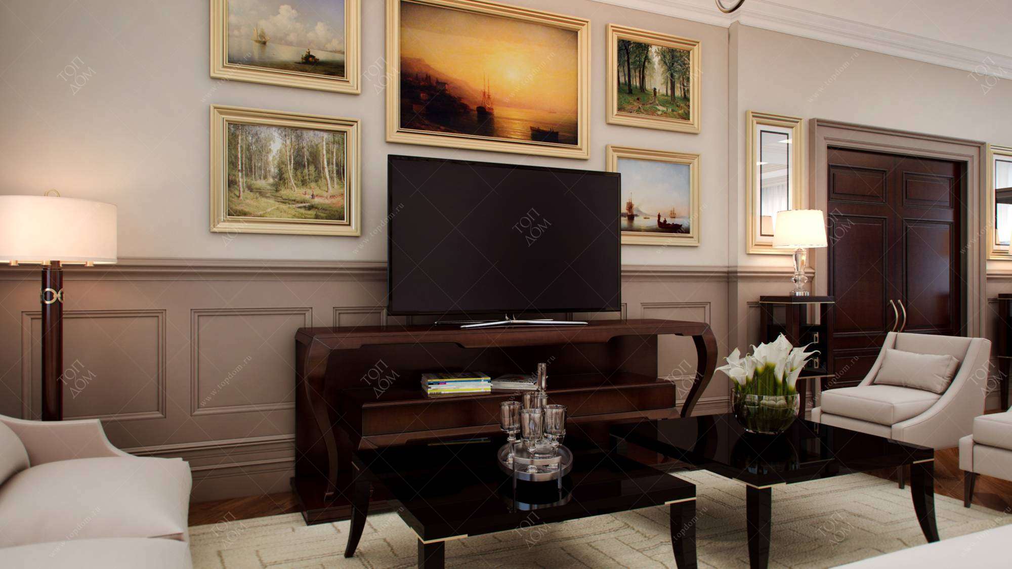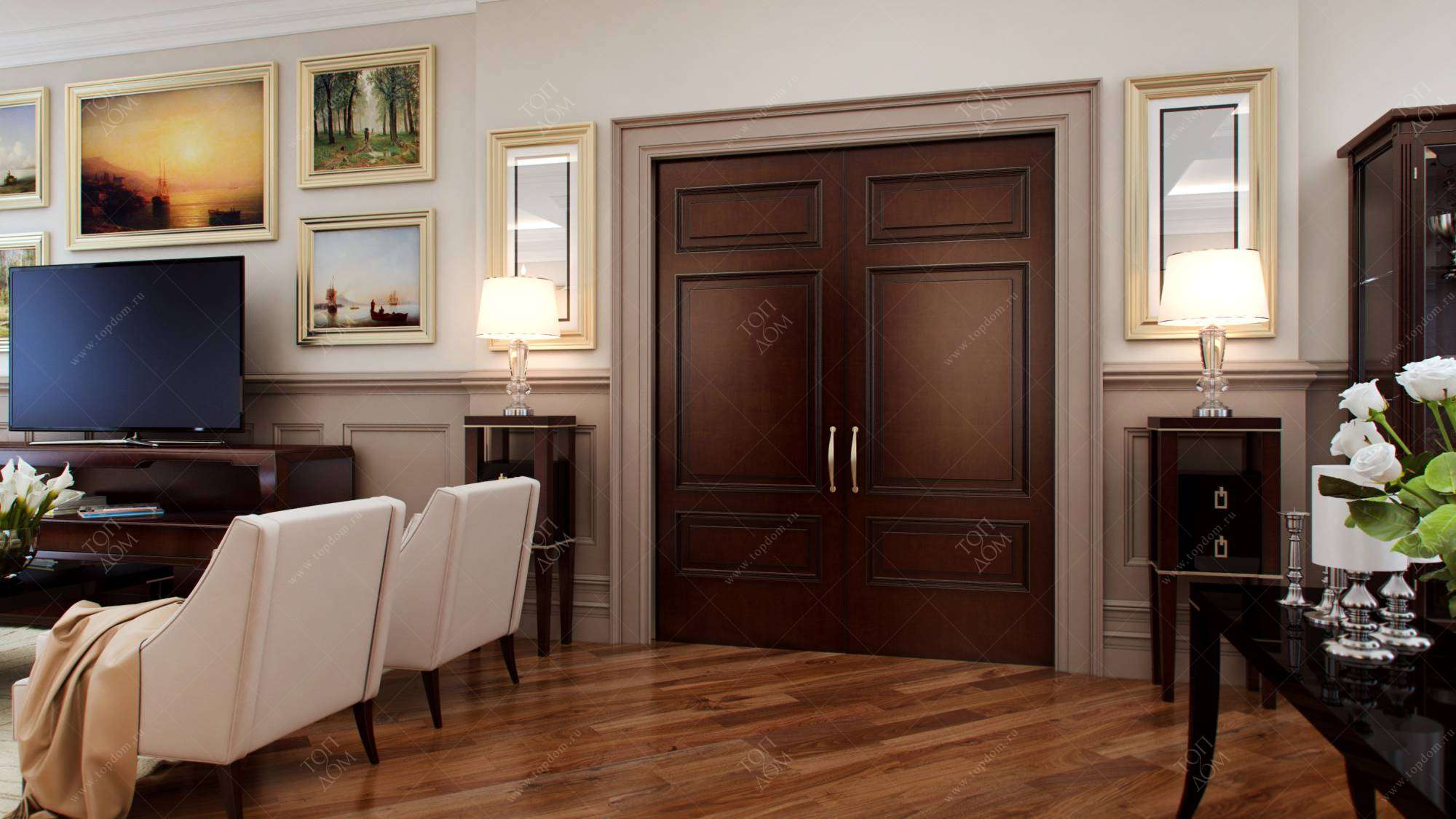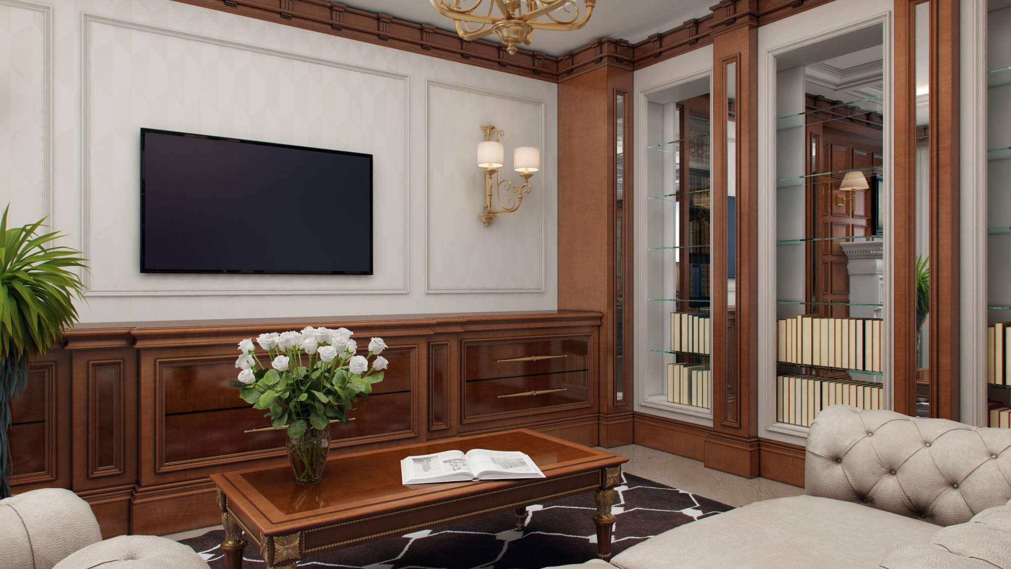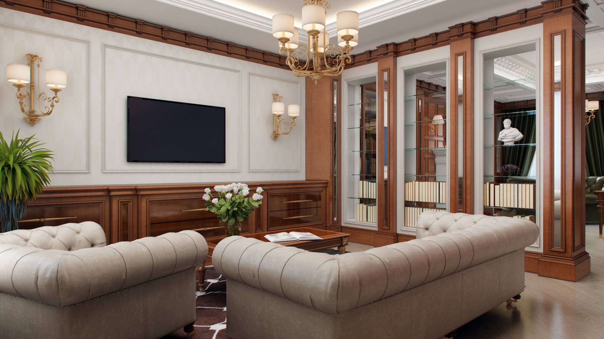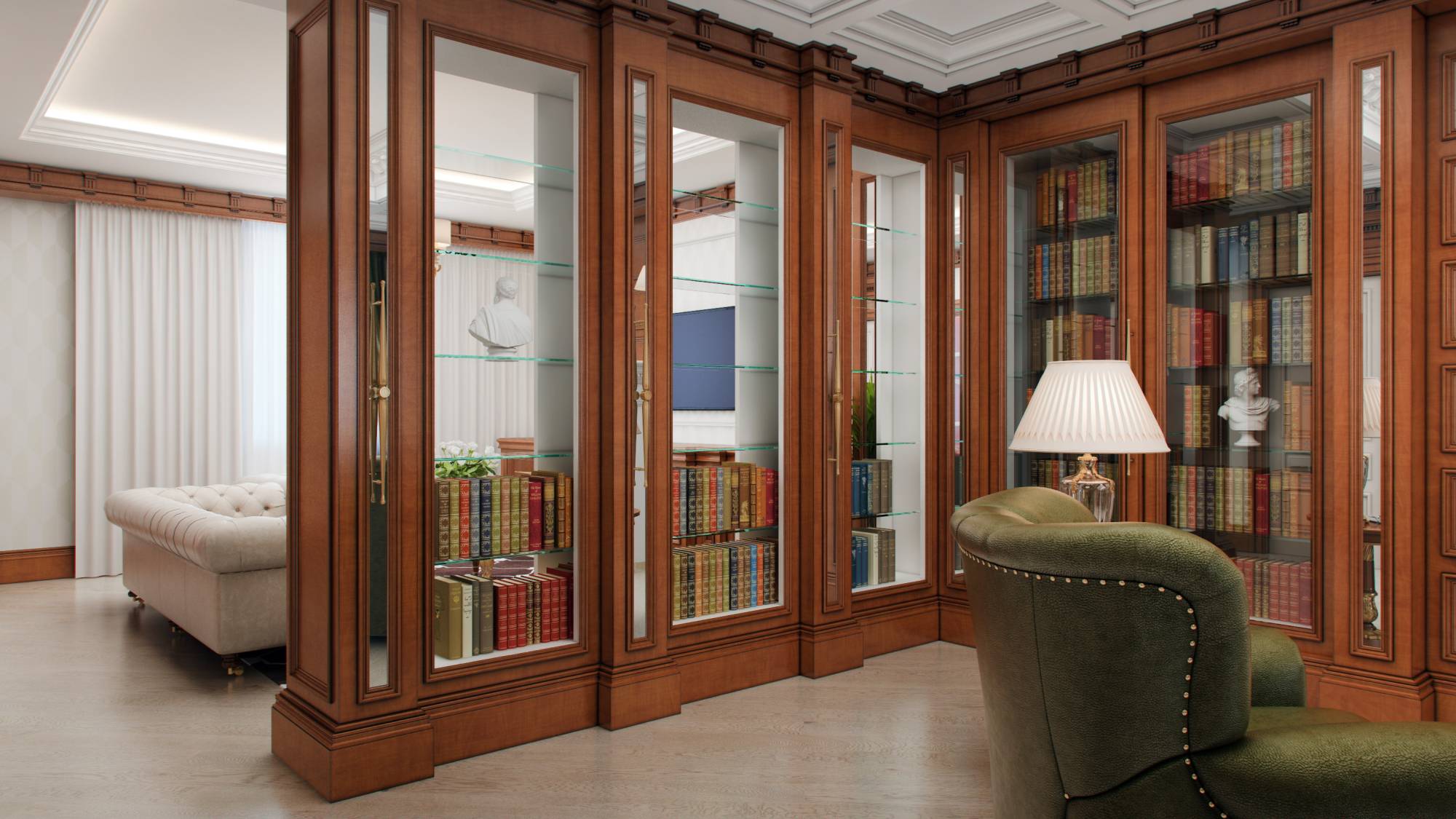 Проект классической гостиной и библиотеки – наглядный пример, как разрабатываются эксклюзивные интерьеры в компании «ТопДом».