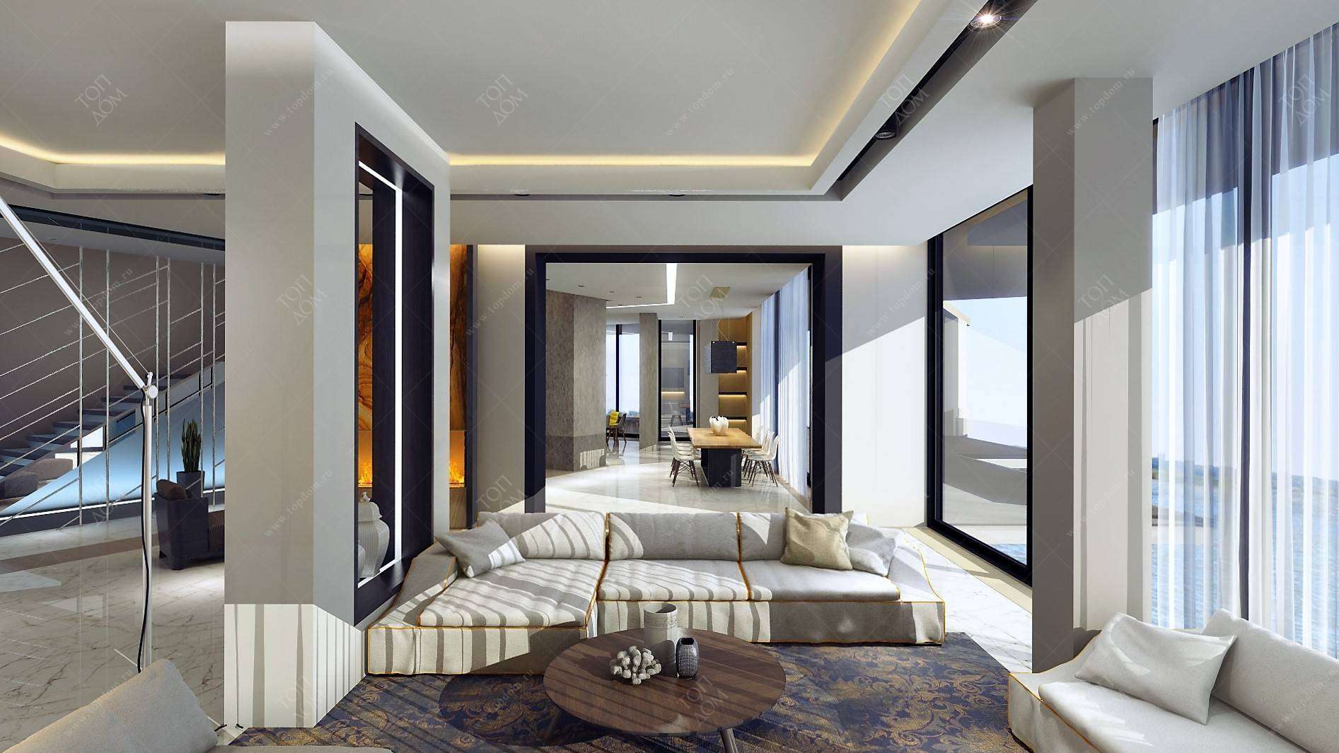 Демонстрирует окончательный вариант интерьерного проекта жилого дома в формате 3D-моделирования. Использует подготовленные чертежи и схемы, планы расстановки мебели, эскизы. Объемные изображения дают возможность рассмотреть каждое помещение с разных ракурсов, понять, как будет выполнено зонирование, увидеть, как и куда падает свет, насколько хорошо сочетаются мебель и декор.