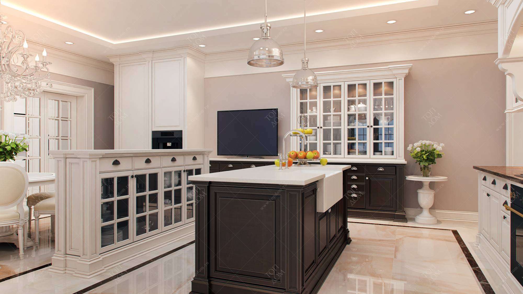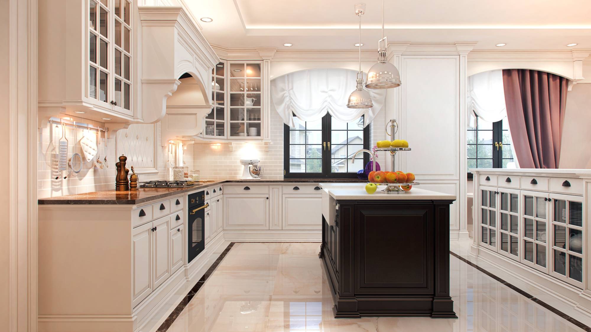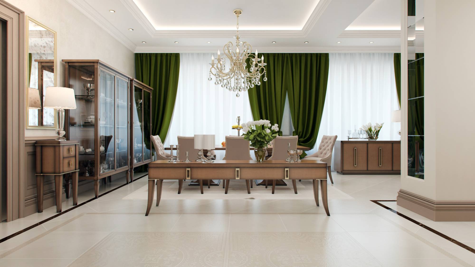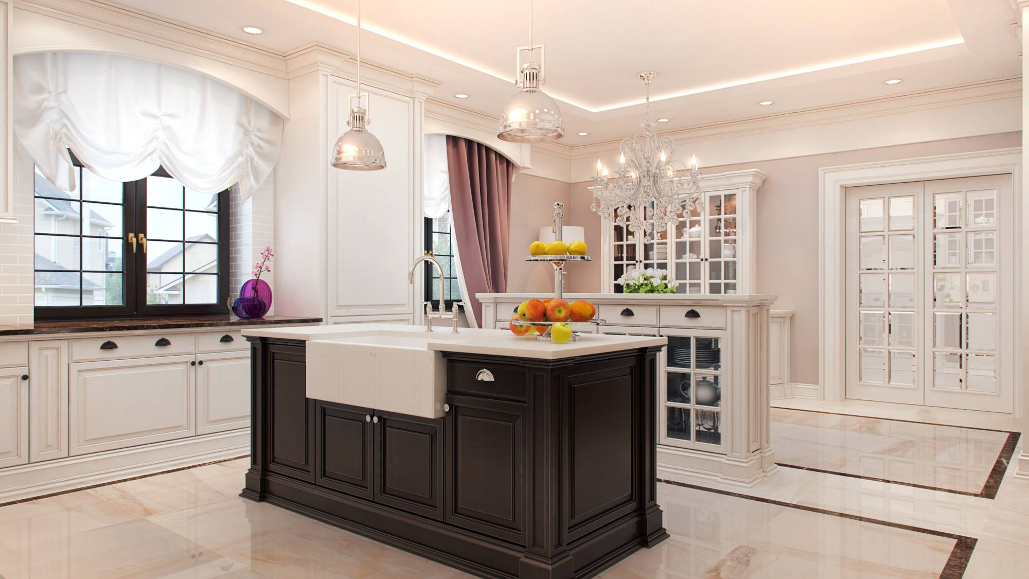 В дизайне гостиной, кухни, спальной комнаты парадные образы классики приобретают современное звучание. Особенно элегантной обстановку делает утонченная цветовая гамма в светлых тонах.