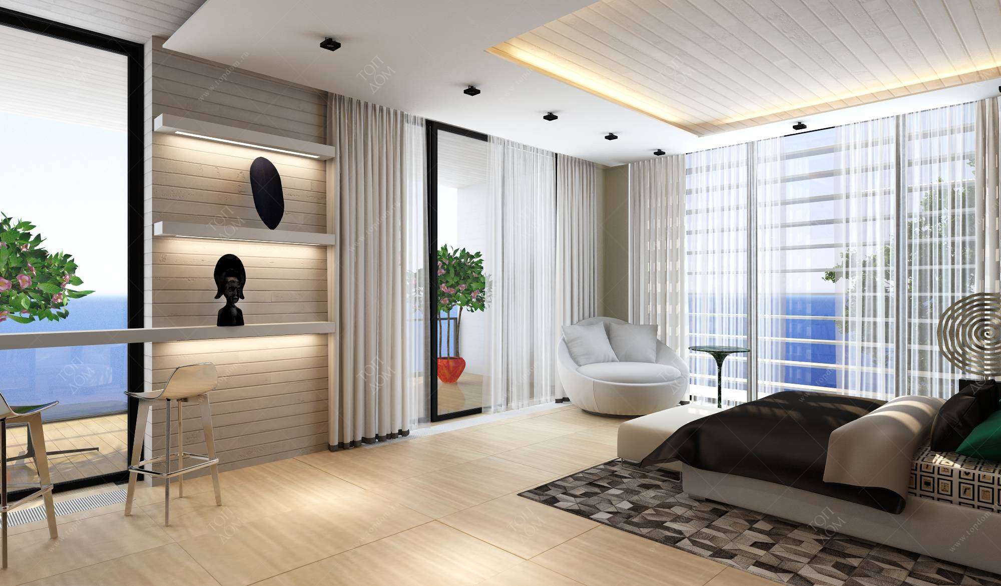 Стильный интерьер дома с видом на море